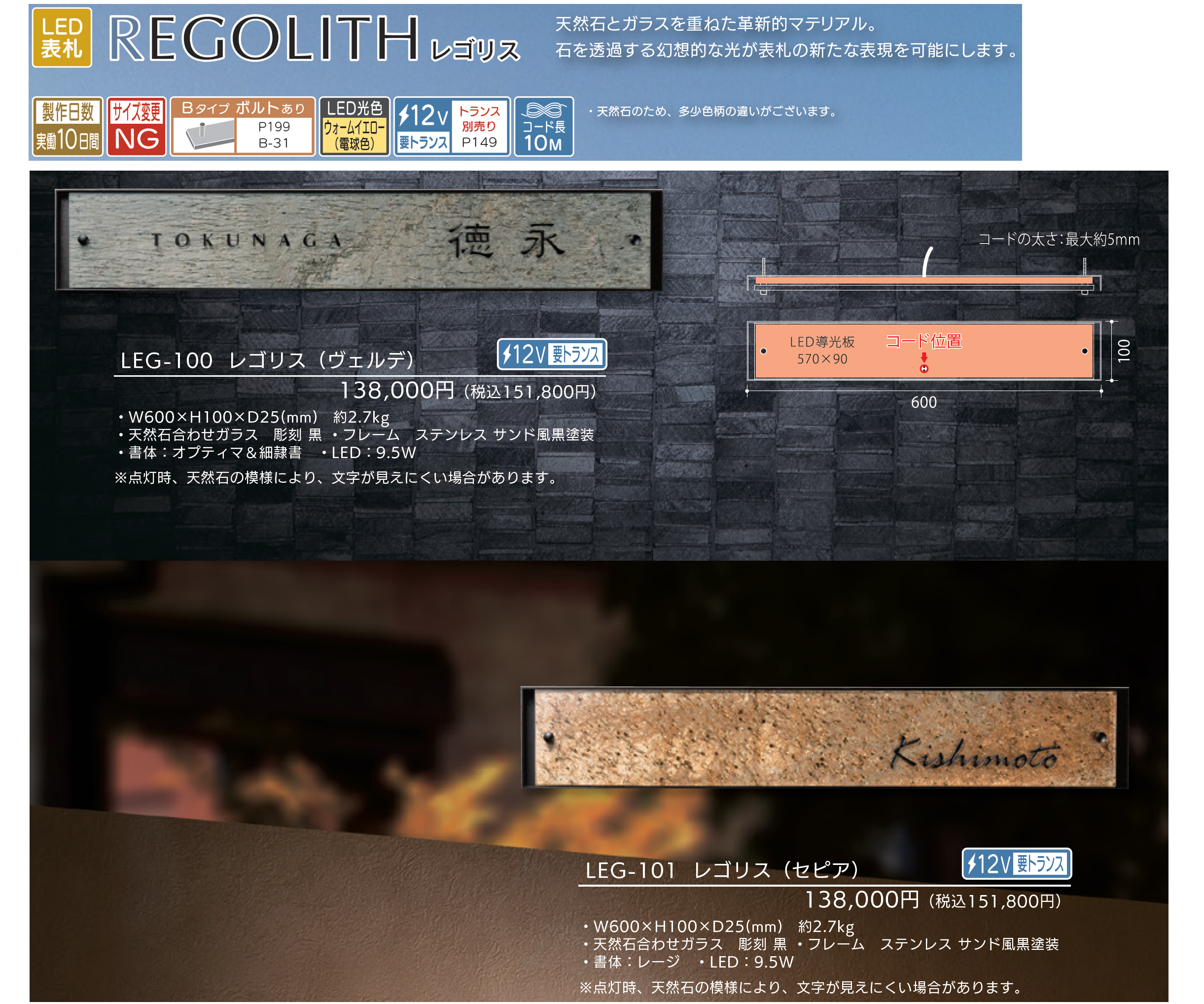 | 新旧品 | レゴリス【2025年版】(表札総合カタログWELNA Vol.23)レゴリス【2024年版】(表札総合カタログWELNA Vol.22)レゴリス【2023年版】(表札総合カタログWELNA Vol.21) |