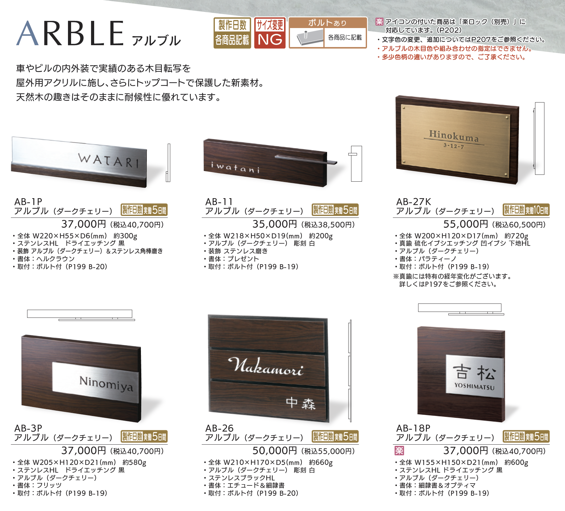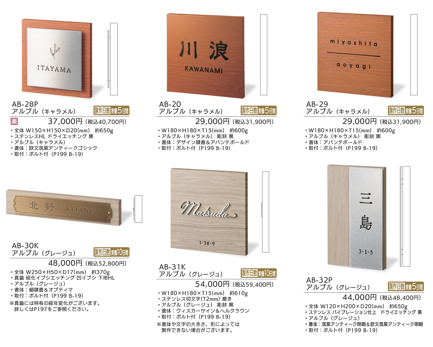 | 新旧品 | アルブル【2025年版】(表札総合カタログWELNA Vol.23)アルブル【2024年版】(表札総合カタログWELNA Vol.22)アルブル【2023年版】(表札総合カタログWELNA Vol.21) |