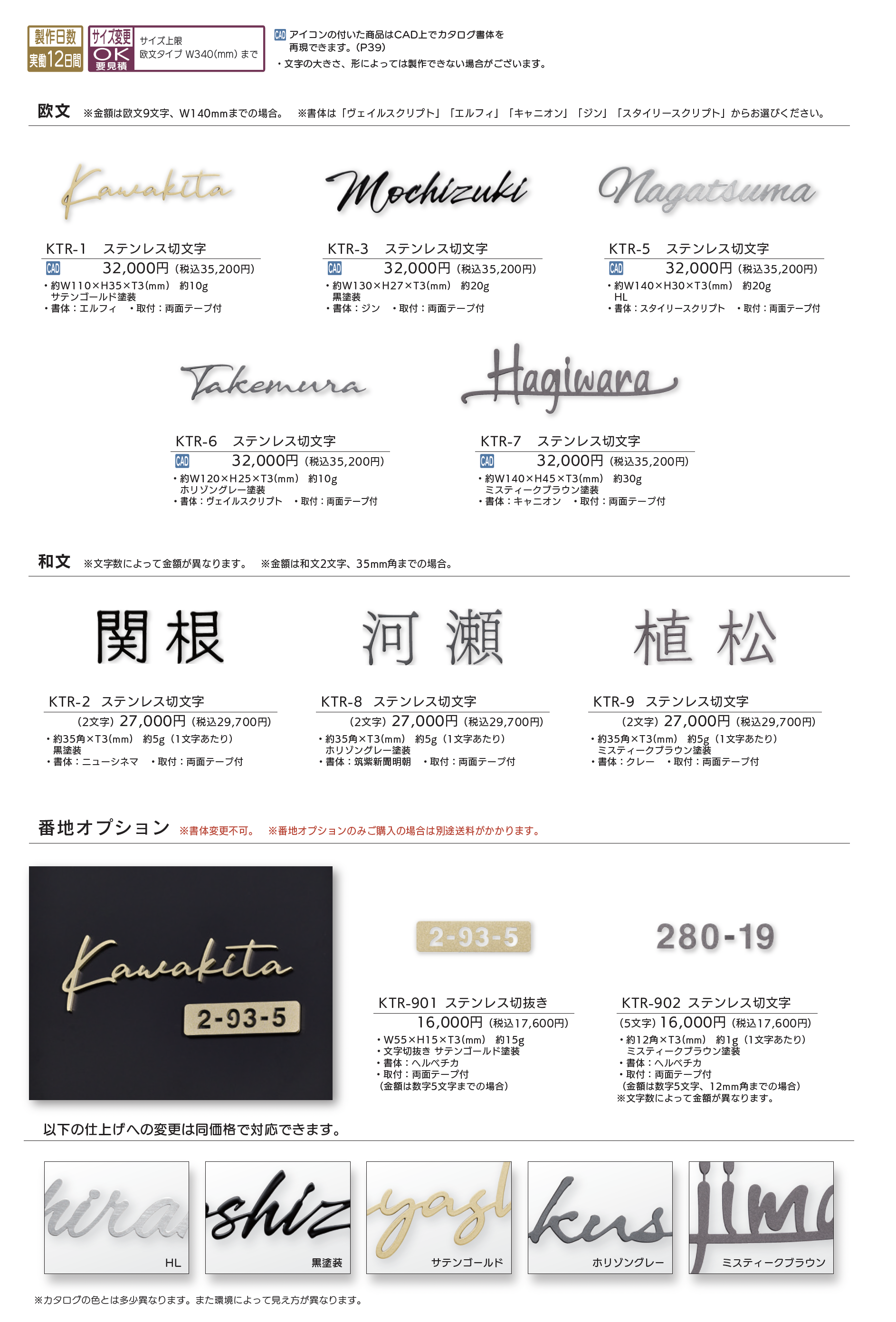 | 標準納期 | 実働制作日数12日間 |