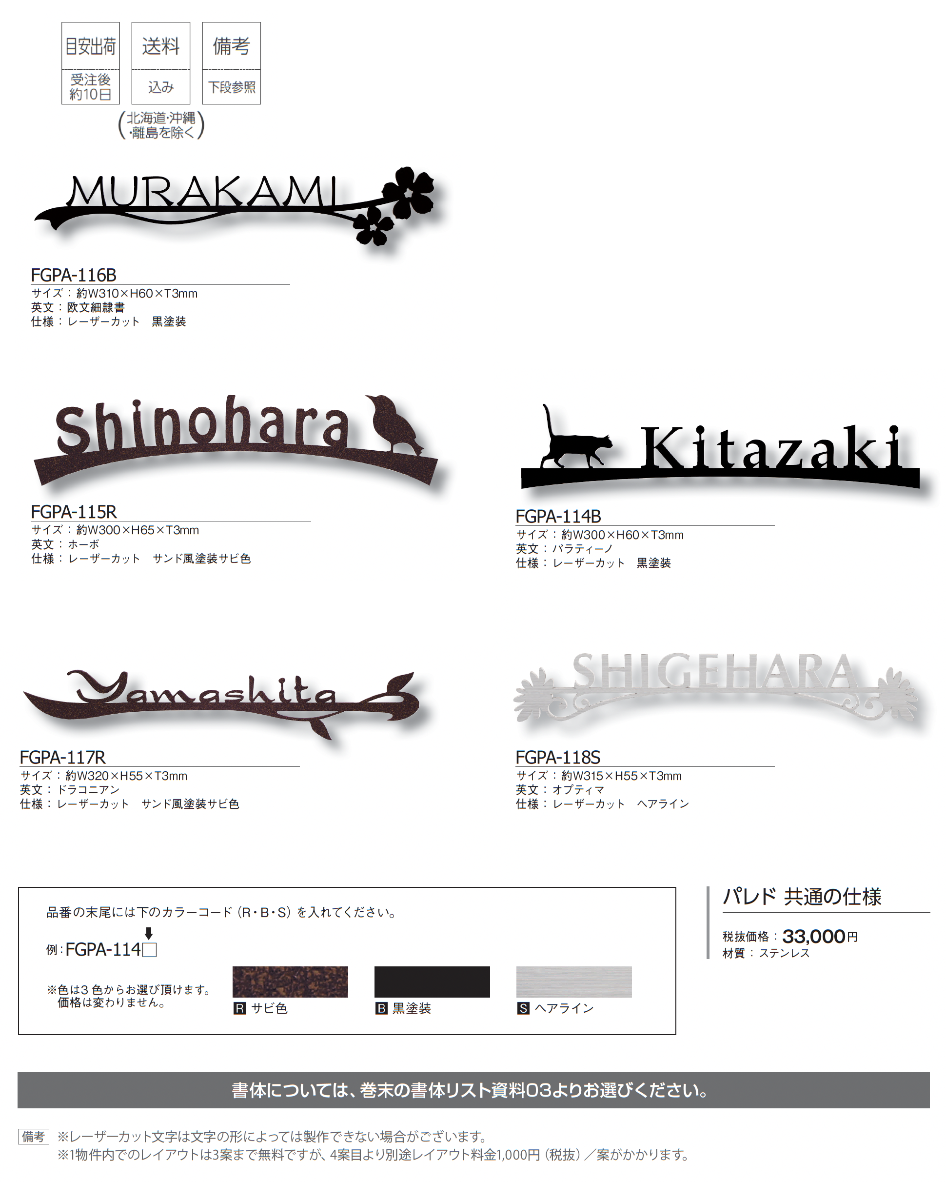 | カラー | R:サビ色 B:黒塗装 S:ヘアライン |