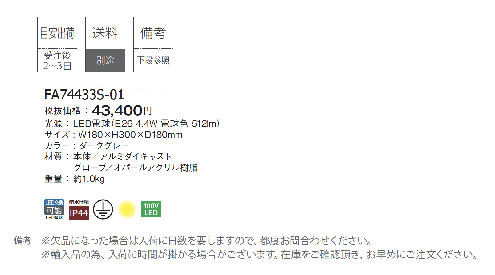 | カラー | ダークグレー 電球色 |