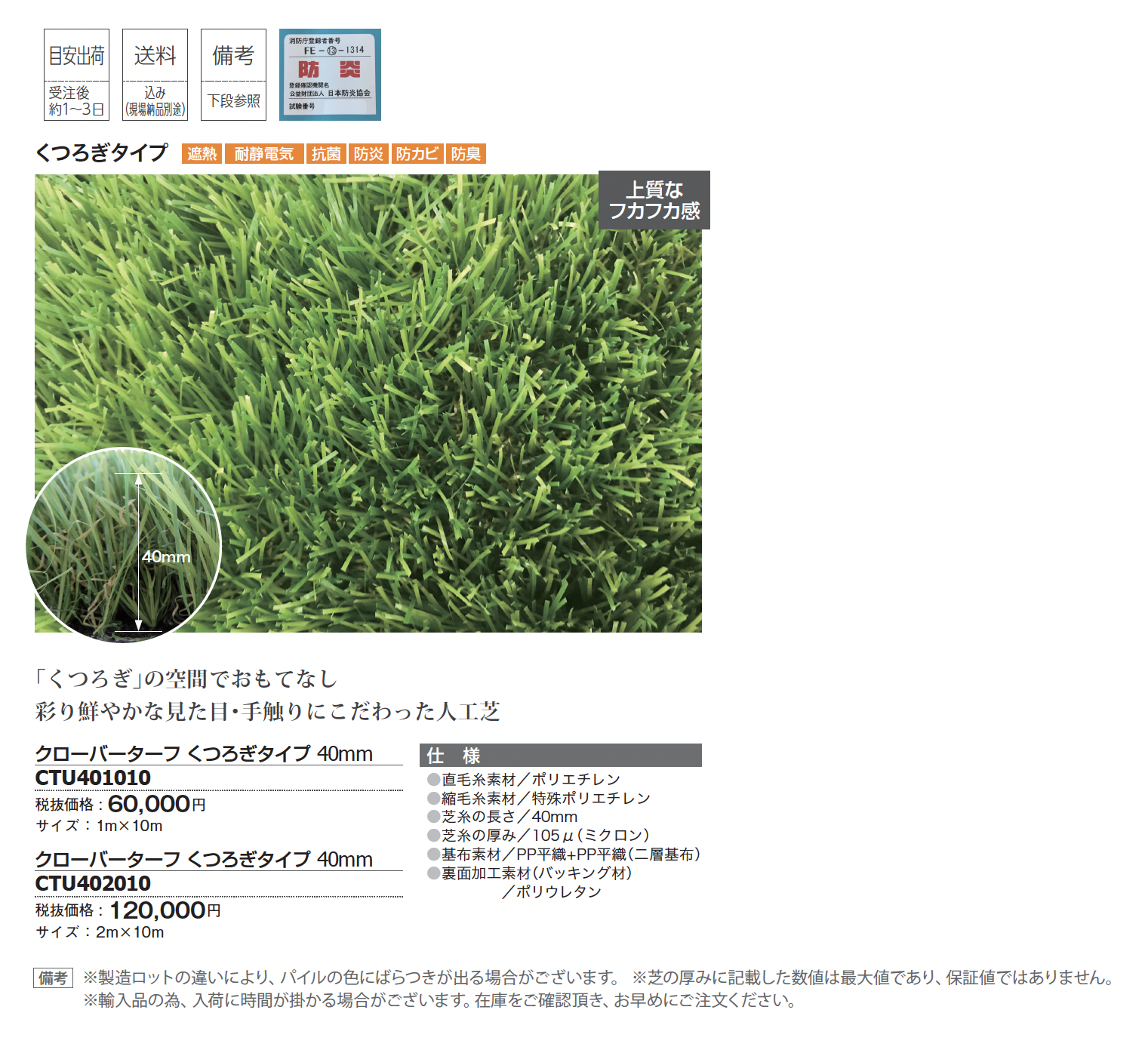 | 新旧品 | 人工芝 クローバーターフ くつろぎタイプ【2025年版】(ギャザー2025 vol.14)クローバーターフ くつろぎタイプ【2024年版】(ギャザー2024 vol.13) |