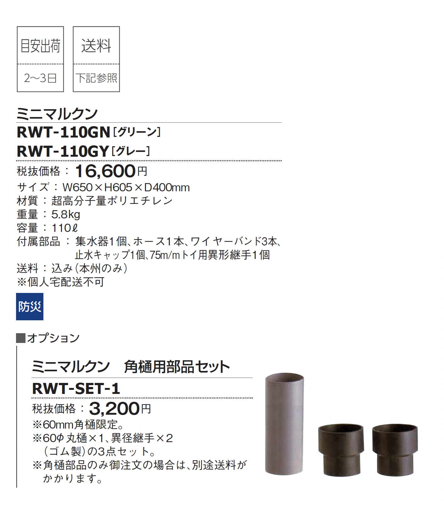 | 新旧品 | 雨水タンク ミニマルクン【2025年版】(ギャザー2025 vol.14)雨水タンク ミニマルクン【2024年版】(ギャザー2024 vol.13) |