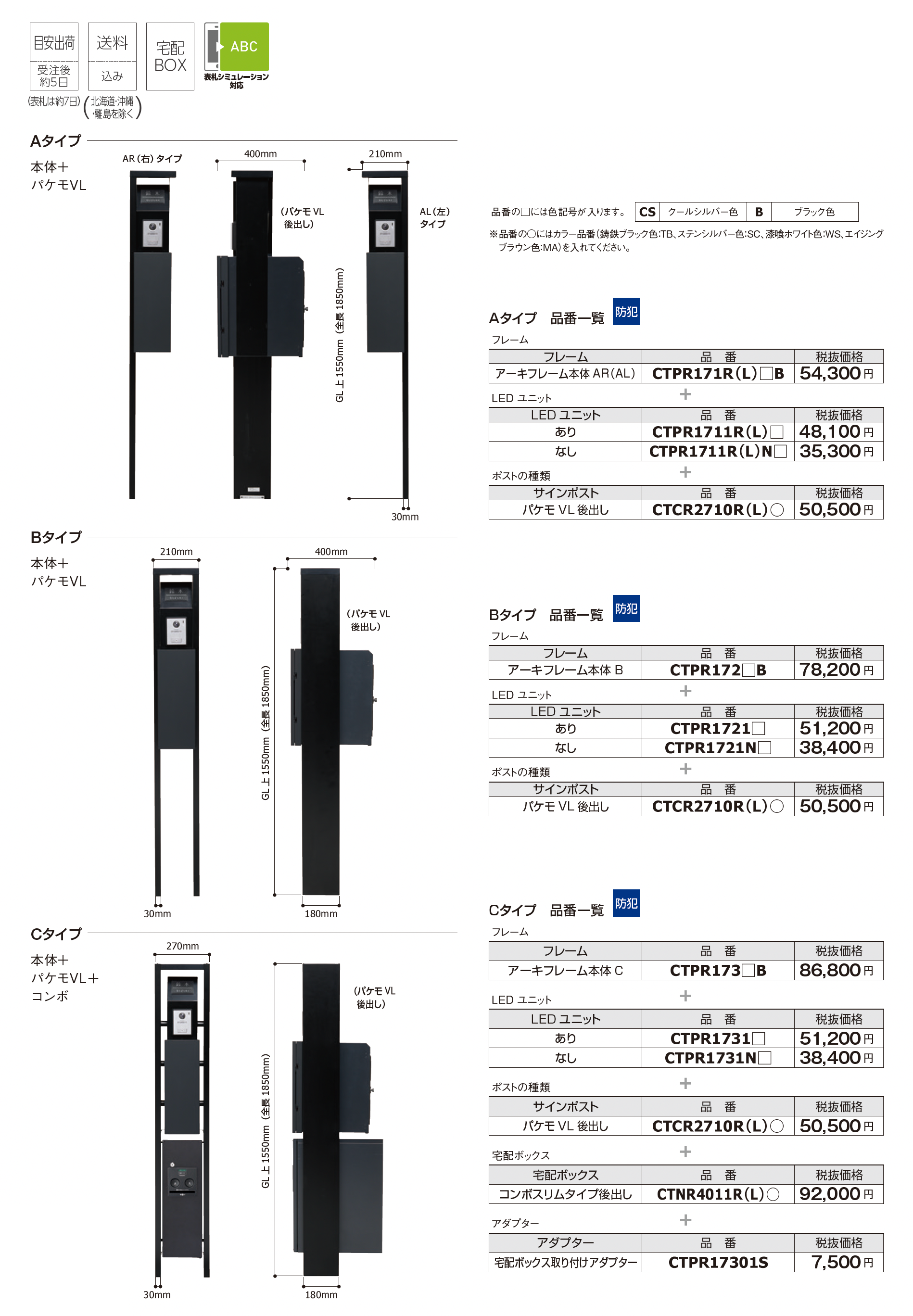 | カラー | B:ブラック CS:クールシルバー M:ブラウン |