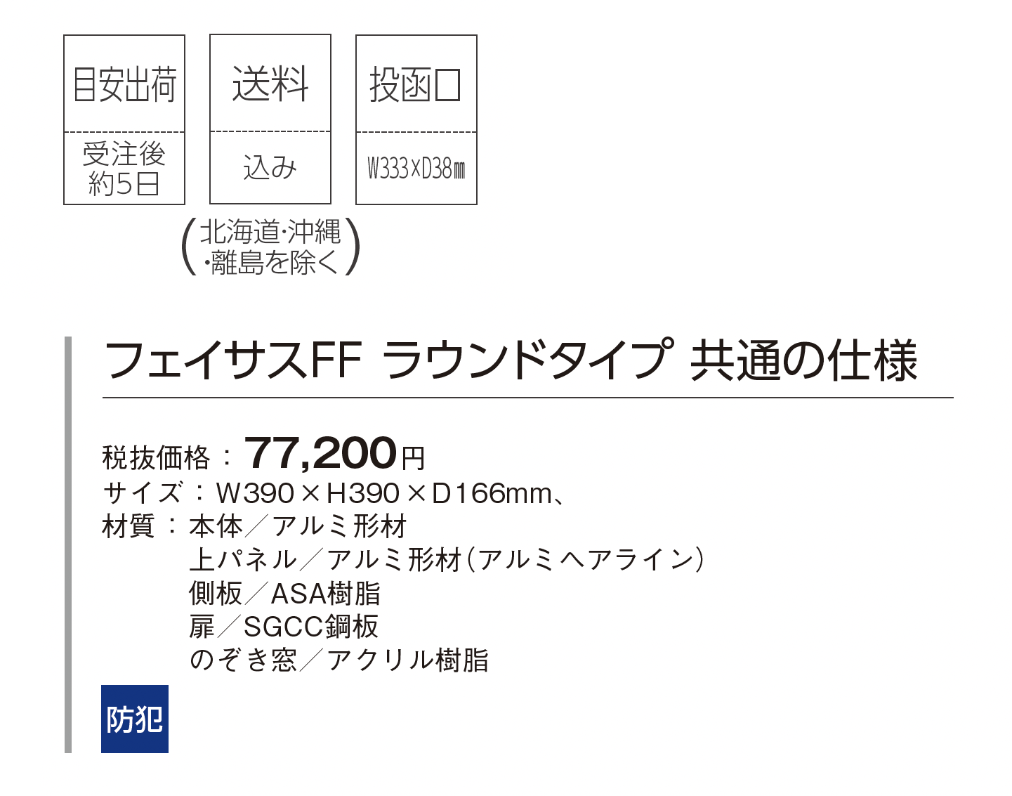 | カラー | TB:鋳鉄ブラック色 SC:ステンシルバー色 WS:漆喰ホワイト色 MA:エイジングブラウン色 |