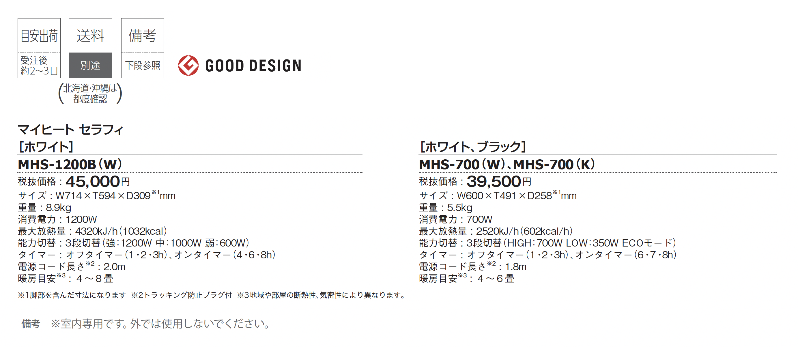 | カラー | W:ホワイト K:ブラック |