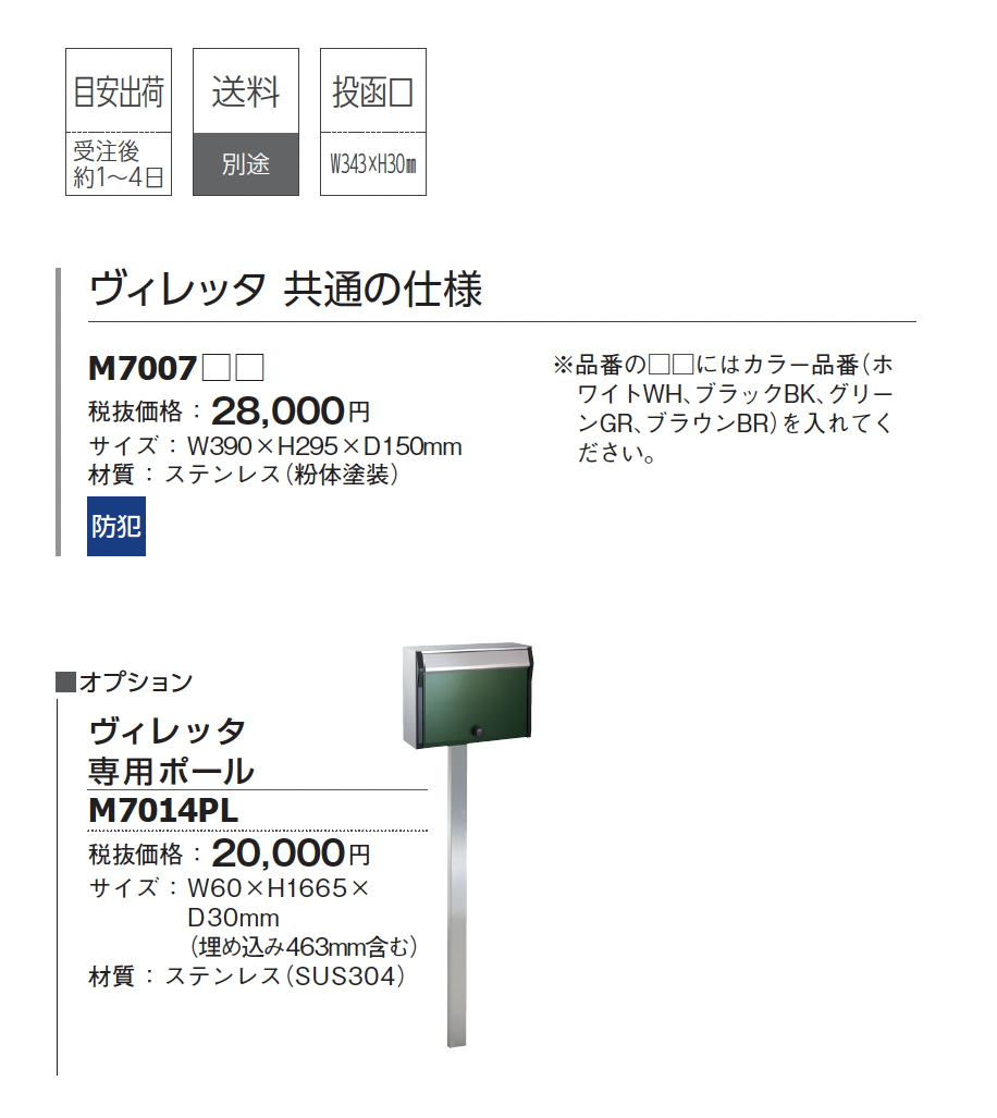 | カラー | WH:ホワイト BK:ブラック GR:グリーン BR:ブラウン |