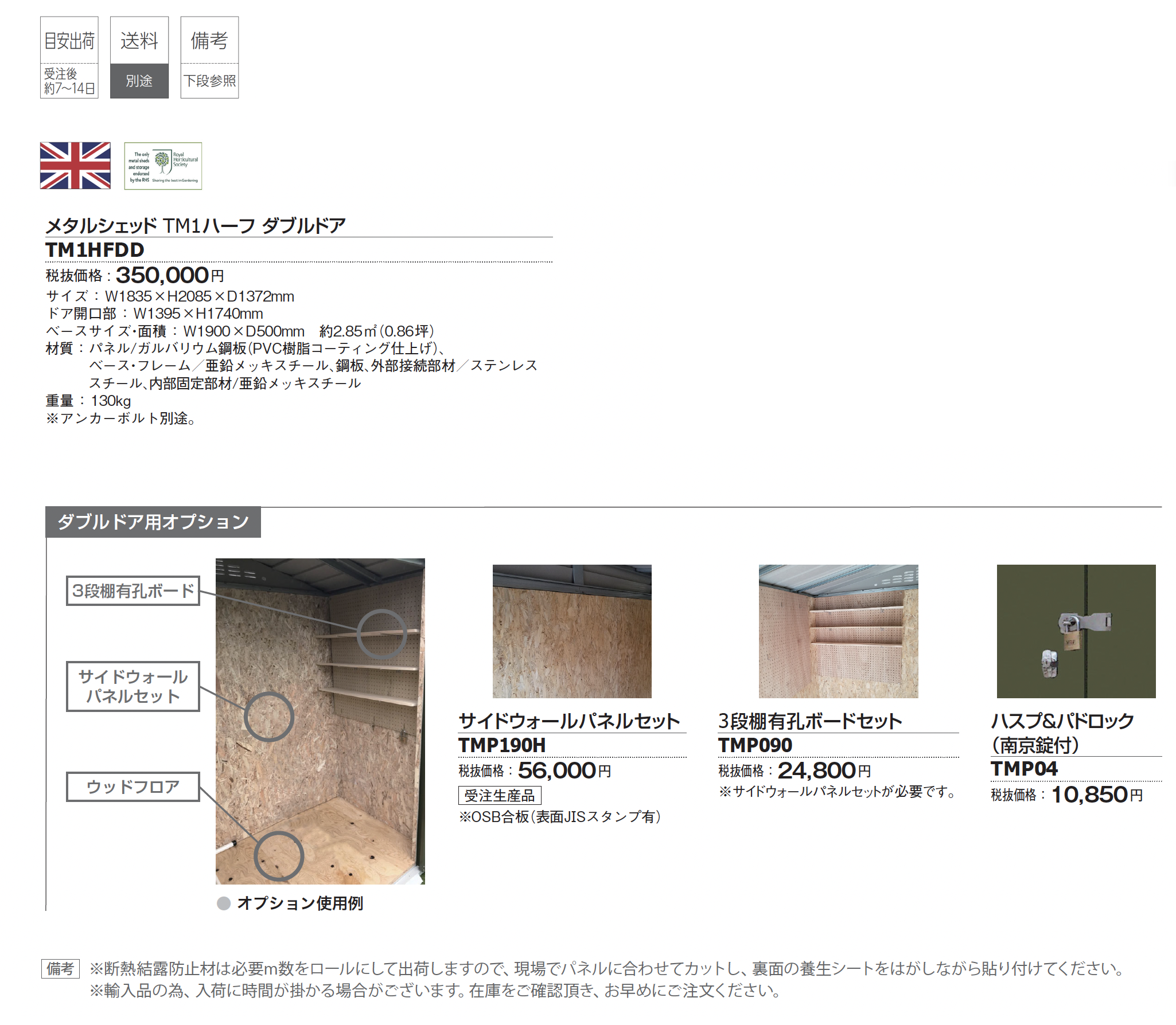 | 新旧品 | メタルシェッド TM1ハーフ ダブルドア【2025年版】(ギャザー2025 vol.14)メタルシェッド TM1ハーフ ダブルドア【2024年版】(ギャザー2024 vol.13) |