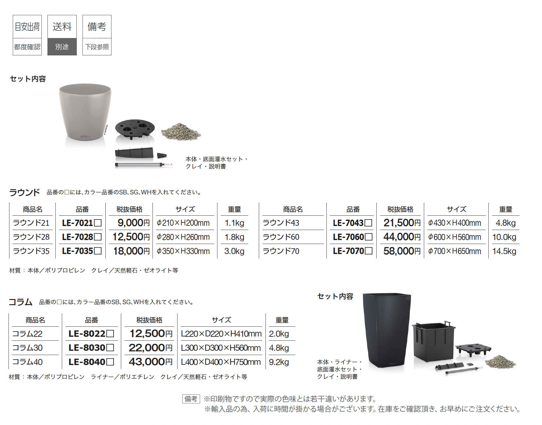 | カラー | SB:サンドブラウン SG :ストーングレイ WH:ホワイト |