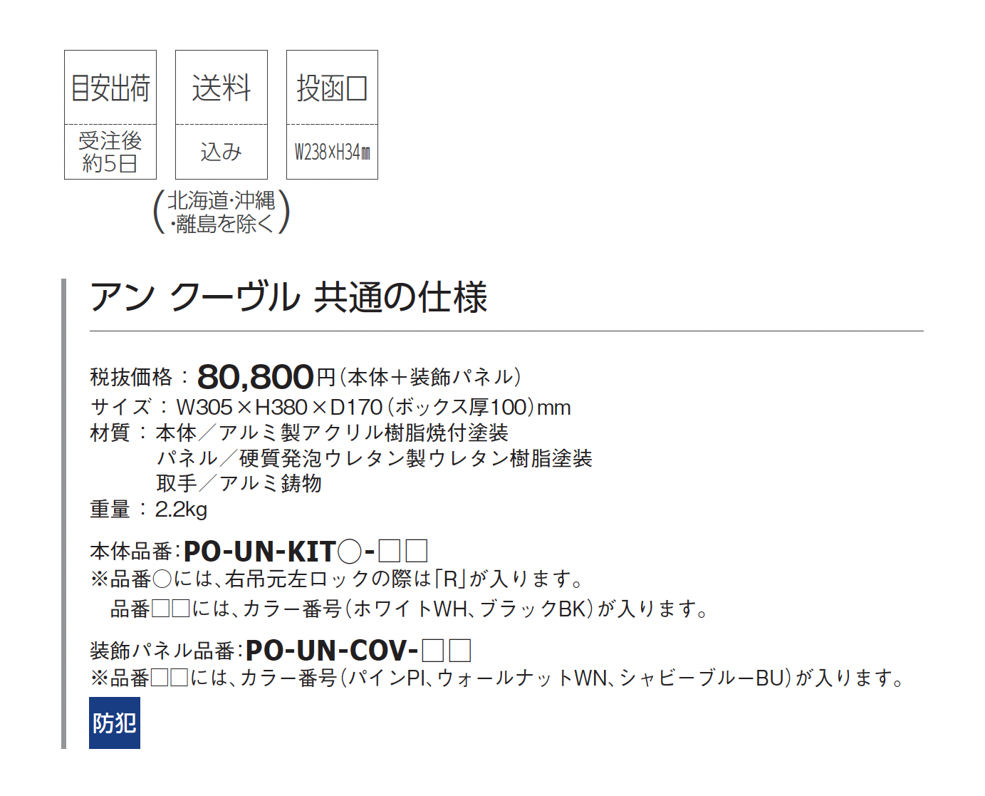 | カラー | PI:パイン BU:シャビーブルー WN:ウォールナット WH:ホワイト BK:ブラック |