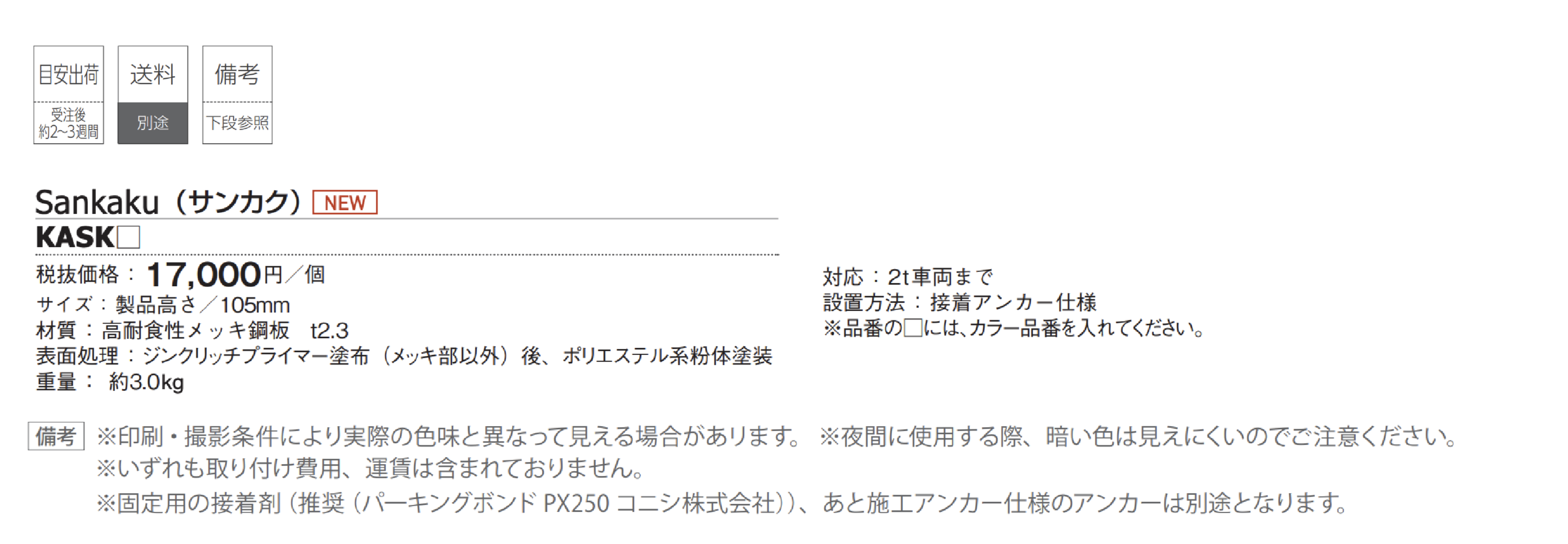 | カラー | PW:ピュアホワイト ST:サテンブラック SR:シグナルレッド TE:トラフィックイエロー PG2:ペールグリーン PB2:パステルブルー SG:サテンダークグレー |