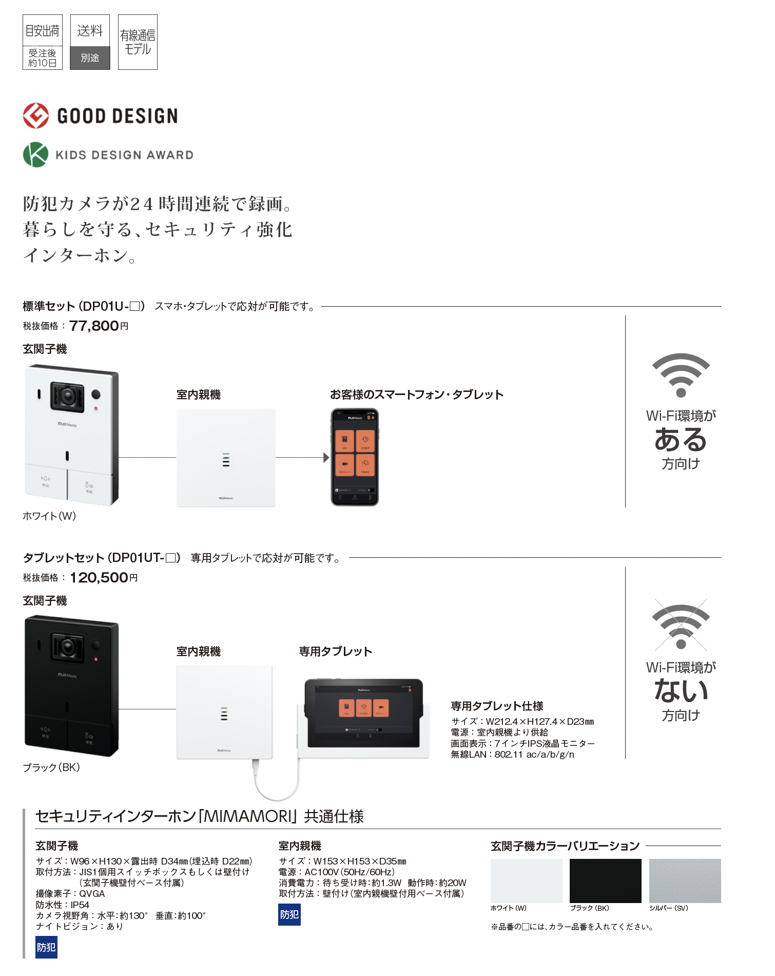 セキュリティインターホン「MIMAMORI」標準セット/タブレットセット