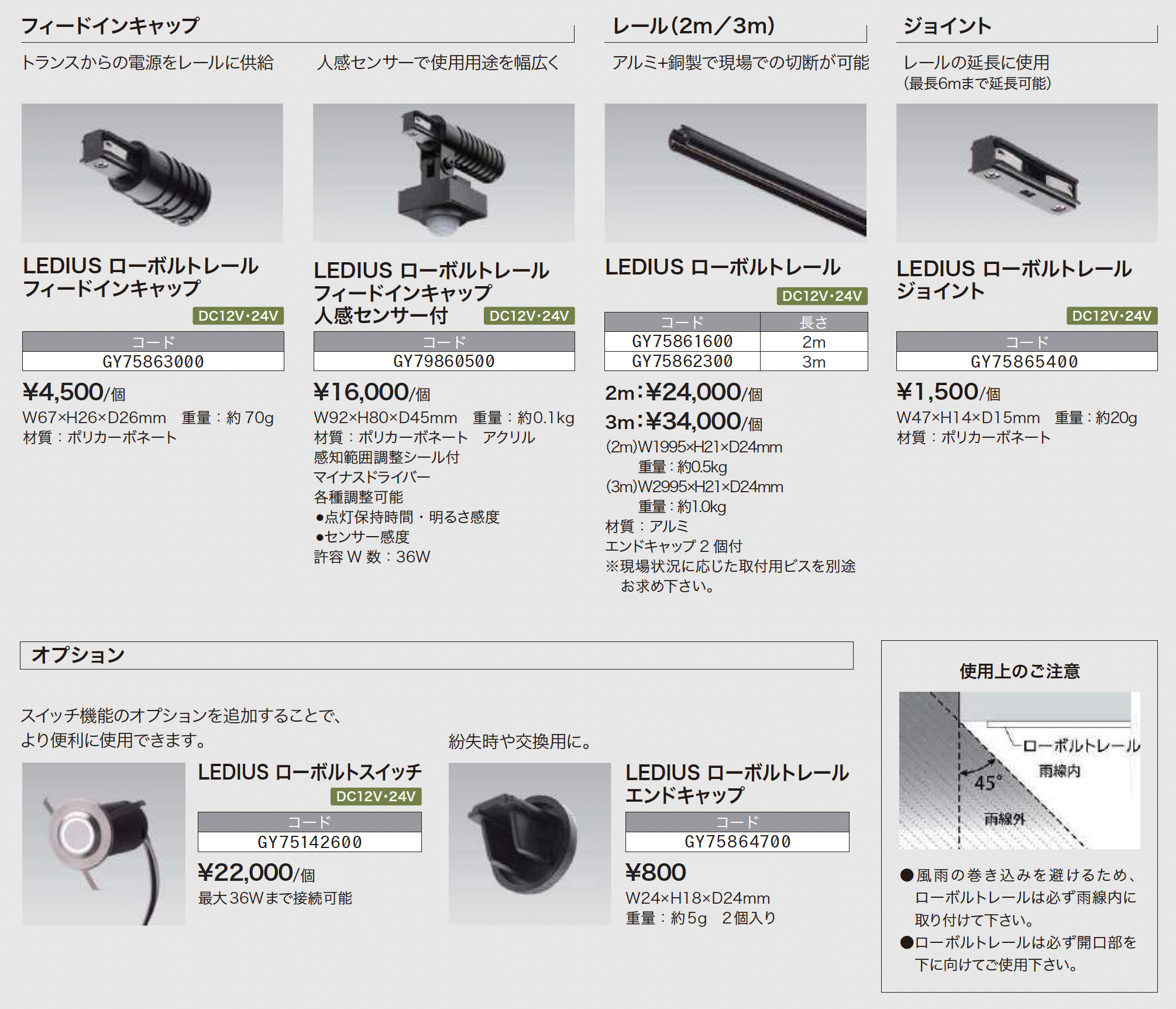※ローボルト(12V/24V)ライトをご使用の際にはローボルトトランス、ジャンクションボックス、専用コード等のアクセサリーが必要となります。