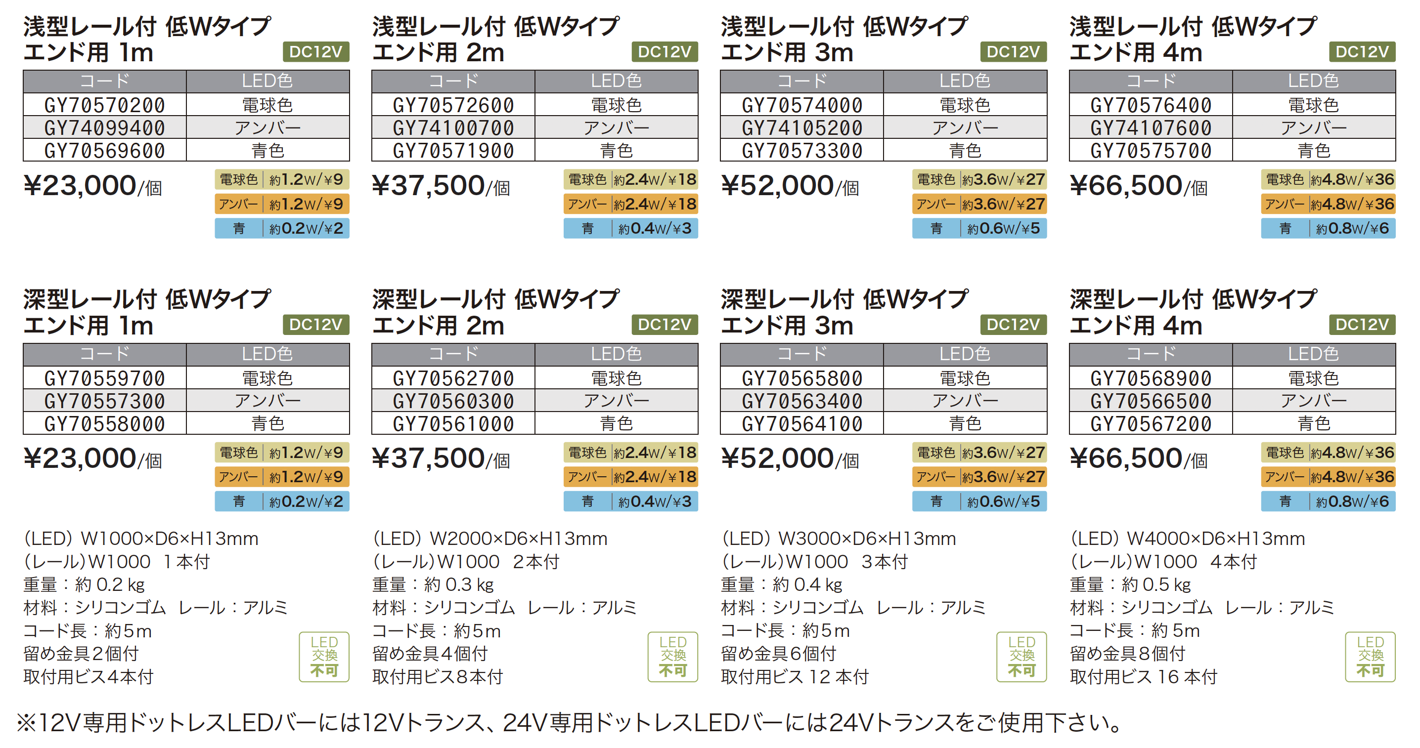 ※ローボルト(12V)ライトをご使用の際にはローボルトトランス、ジャンクションボックス、専用コード等のアクセサリーが必要となります。 ※LEDには明るさや発光色に多少のバラツキがあります。同一商品の場合でも商品ごとに明るさや発光色が異なる場合があります。 ※商品により採用しているLEDの発光効率が異なりますので、LEDのW数ではなく照度表にて明るさをご確認下さい。 ※LED電球およびモジュールにつきましては、予告なく変更することがありますのでご了承下さい。 ※表示価格には消費税および組立費、施工費等は含まれておりません。 ※定価5万円以上は送料込みです。