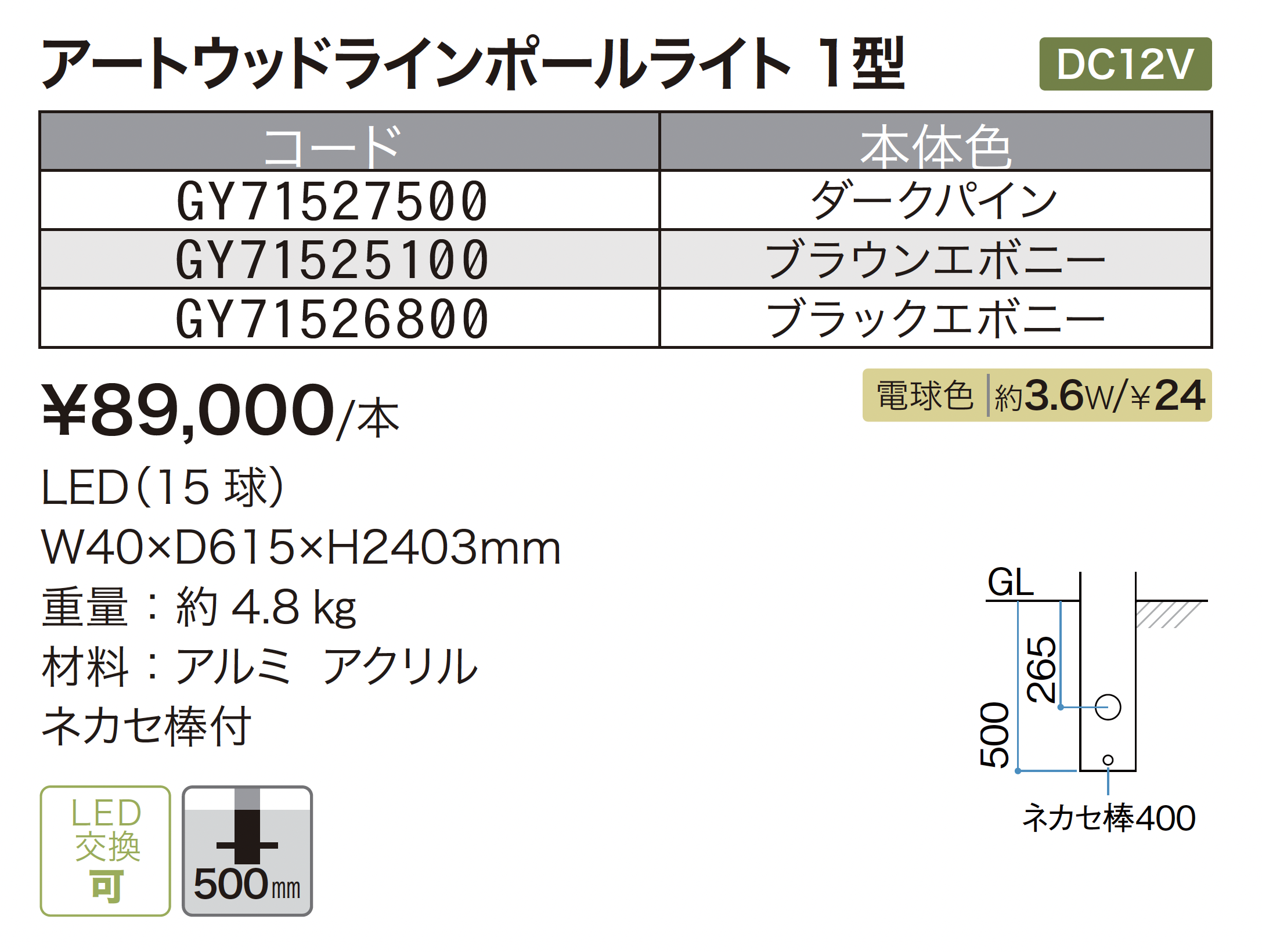 ※ローボルト(12V/24V)ライトをご使用の際にはローボルトトランス、ジャンクションボックス、専用コード等のアクセサリーが必要となります。