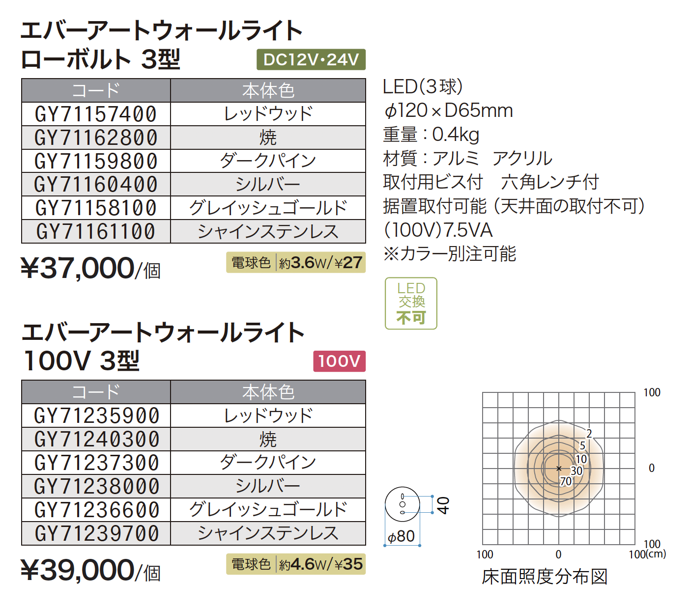 ※ローボルト(12V/24V)ライトをご使用の際にはローボルトトランス、ジャンクションボックス、専用コード等のアクセサリーが必要となります。 ※LEDには明るさや発光色に多少のバラツキがあります。同一商品の場合でも商品ごとに明るさや発光色が異なる場合があります。 ※商品により採用しているLEDの発光効率が異なりますので、LEDのW数ではなく照度表にて明るさをご確認下さい。 ※LED電球およびモジュールにつきましては、予告なく変更することがありますのでご了承下さい。 ※表示価格には消費税および組立費、施工費等は含まれておりません。 ※定価5万円以上は送料込みです。