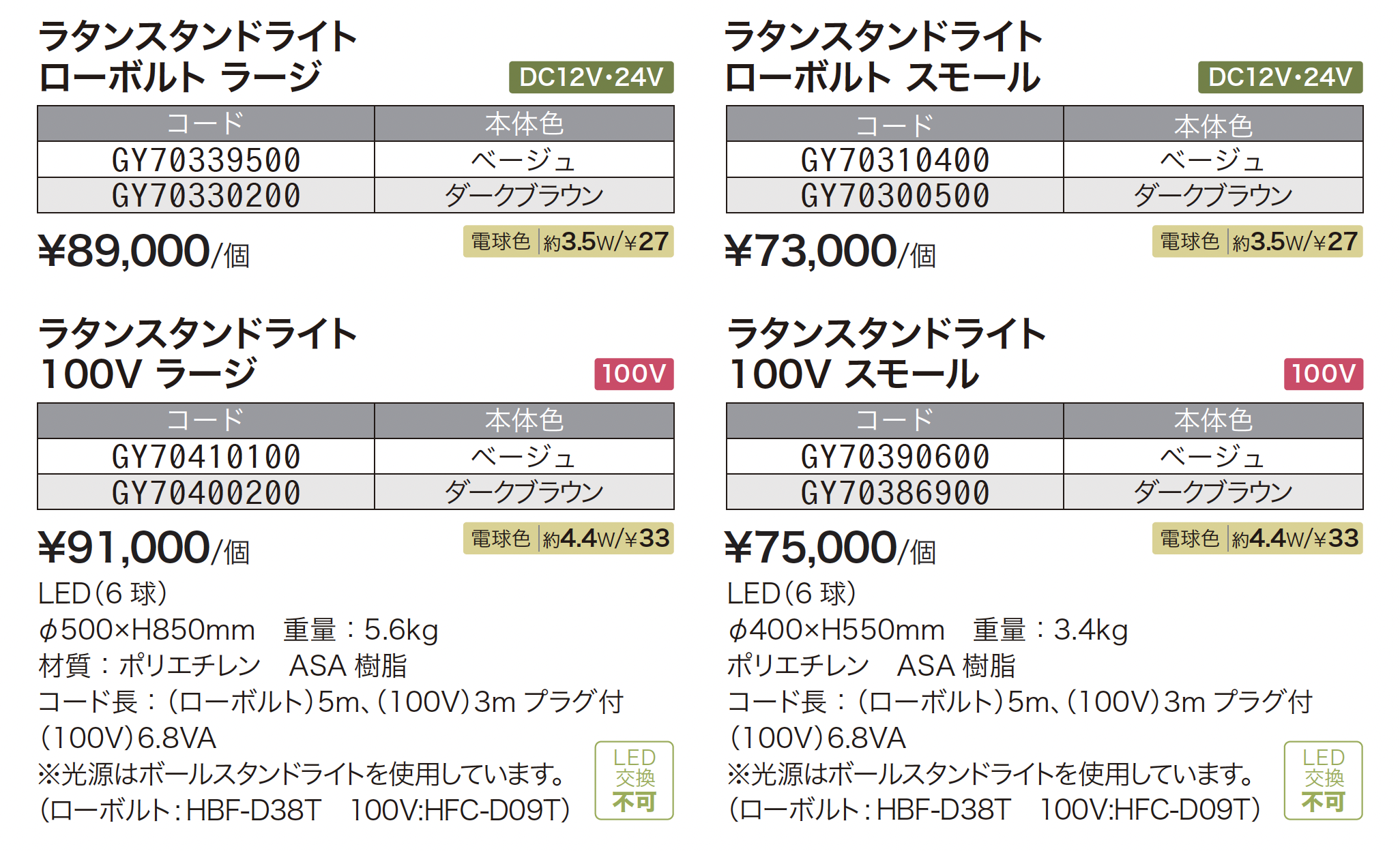 ※ローボルト(12V)ライトをご使用の際にはローボルトトランス、ジャンクションボックス、専用コード等のアクセサリーが必要となります。