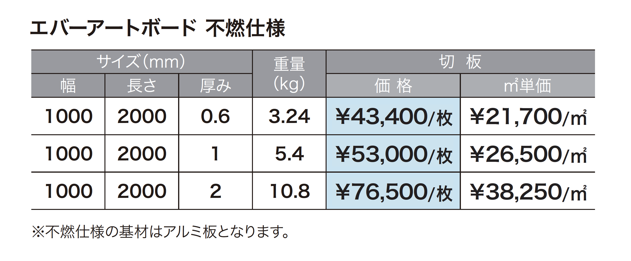 ※カラーによっては納期がかかる場合があります。必ず納期をご確認下さい。 ※エバーアートボードは不燃材ではありません。[不燃]マークのあるカラーのみ不燃仕様に対応可能です。詳しくはお問い合わせ下さい。 ※カラーによっては連結する際に目地が合いにくいことがあります。ジョイント材を入れるなどレイアウトのご検討をお願い致します。 ※材質、光線、印刷状態等の関係で写真と現物の色が多少異なって見えることがあります。 ※表示価格には消費税および組立費、施工費等は含まれておりません。 ※定価5万円以上の場合は送料込みです