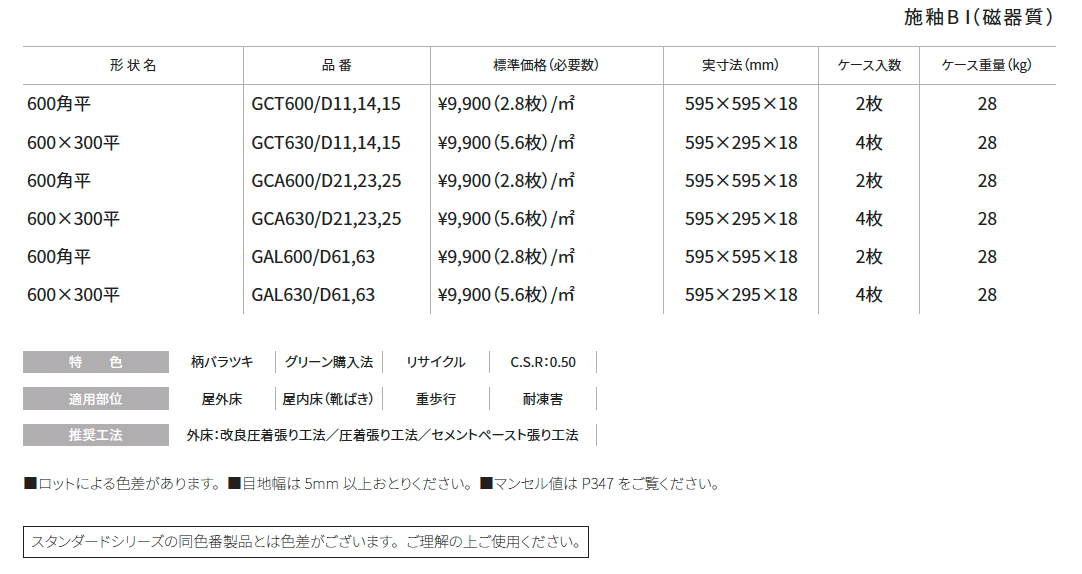 | カラー | GCT/D11 GCT/D14 GCT/D15 GCA/D21 GCA/D23 GCA/D25 GAL/D61 GAL/D63 |