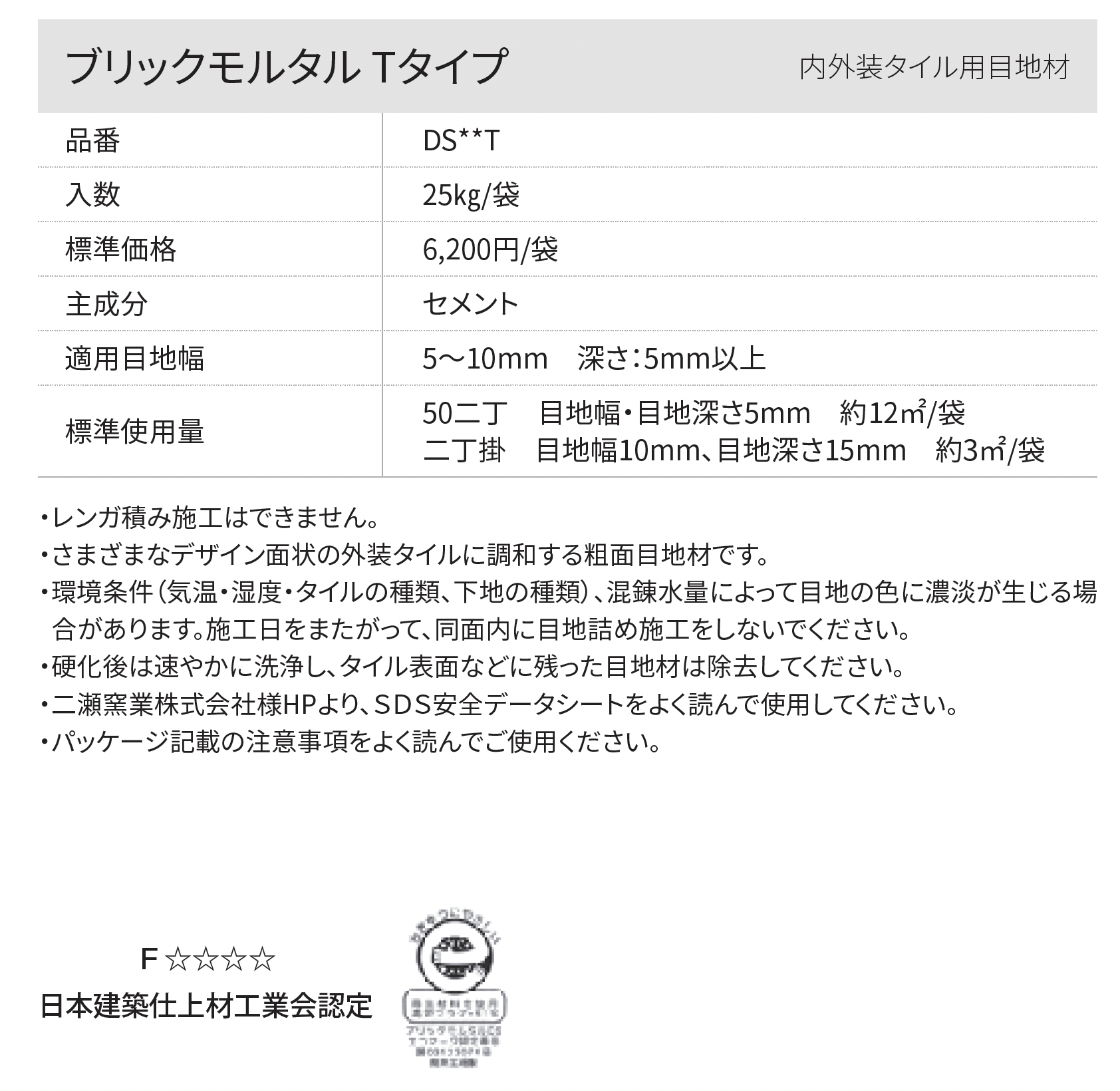| カラー | DS00T:オフホワイト DS01T:サンドイエロー DS02T:アイボリー DS03T:グレイッシュブラウン DS04T:カプチーノブラウン DS06T:アースブラウン DS07T:ホワイト DS08T:グレイ DS09T:ダークグレイ DS10T:ブラック DS12T:アッシュグレイ DS13T:イエローベージュ DS14T:ヴィンテージホワイト |