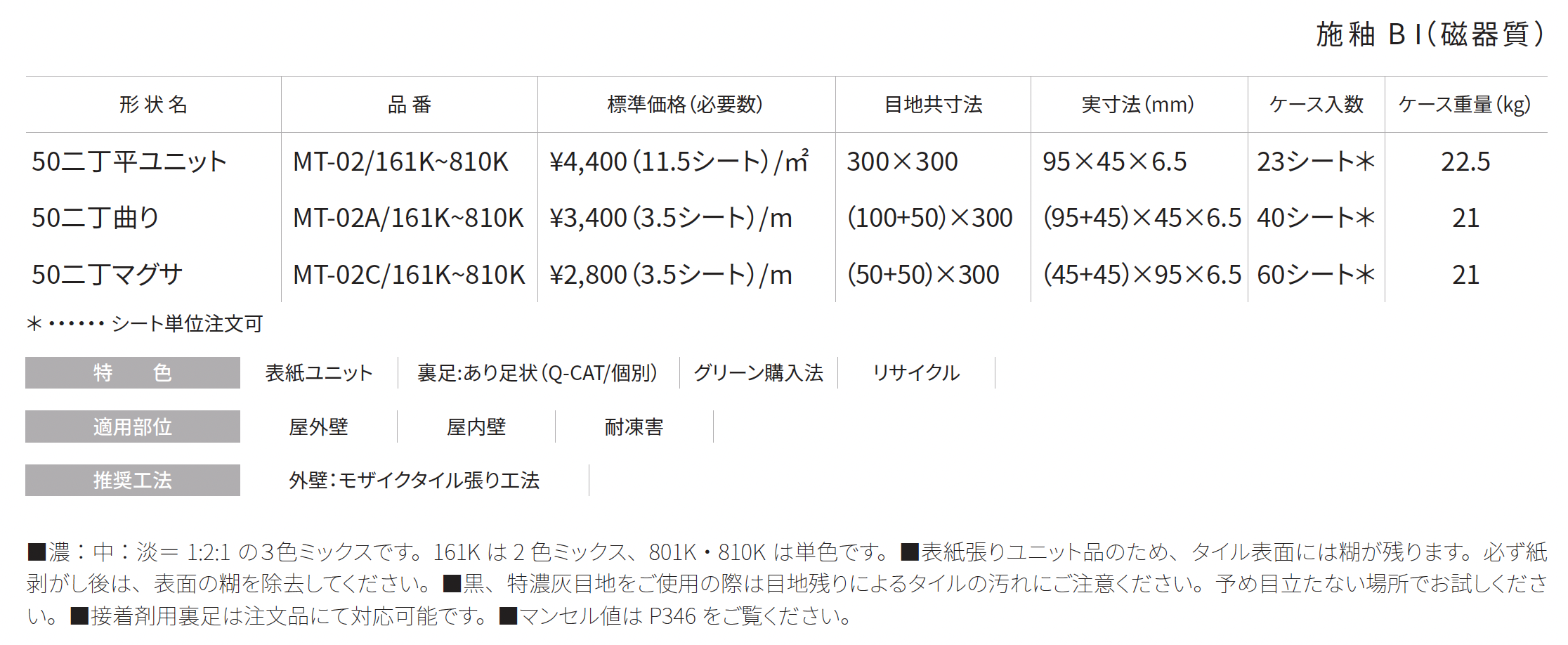 淡色から濃色までの豊富なカラーバリエーション。 建物の良さを引き立てる、使い勝手の良いモザイクタイルです。