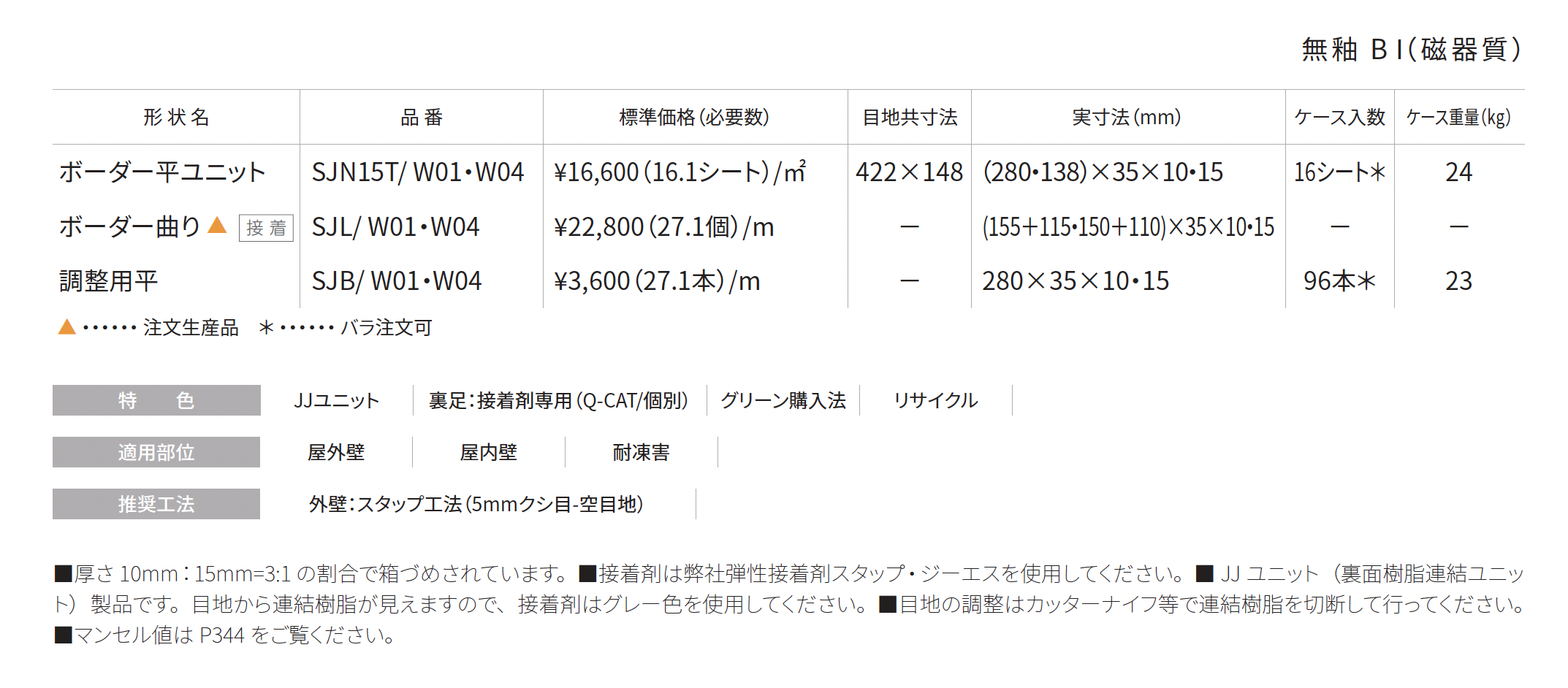 厚みの差による陰影と、表情の異なるタイル表面が生み出す自然な風合いが、高級感の溢れる石積み調タイルです。