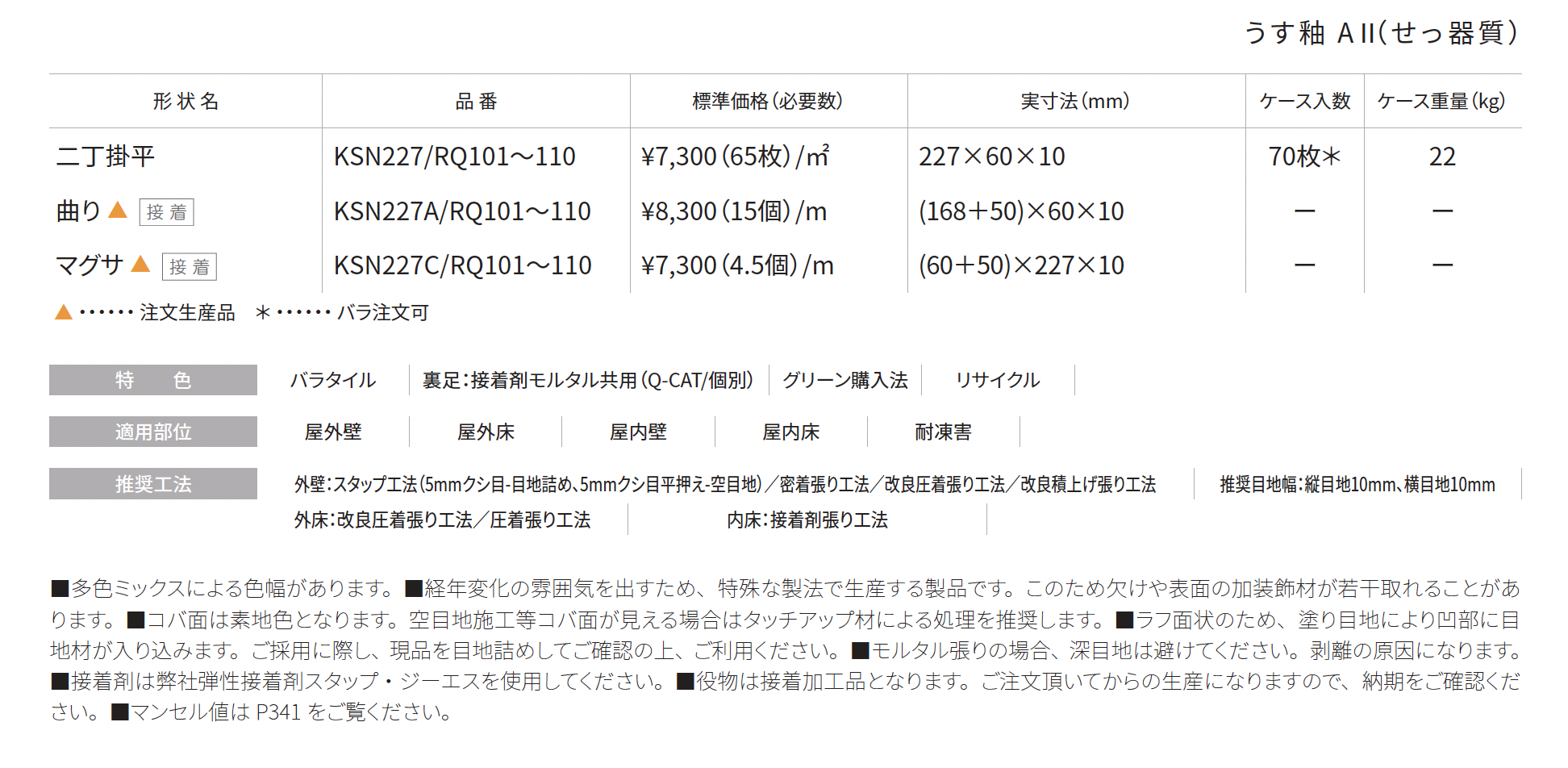 湿式タイルのラフな雰囲気に、ざらっとした表情の質感をプラス。 より深い味わいを実現した、二丁掛のスタンダードシリーズです。