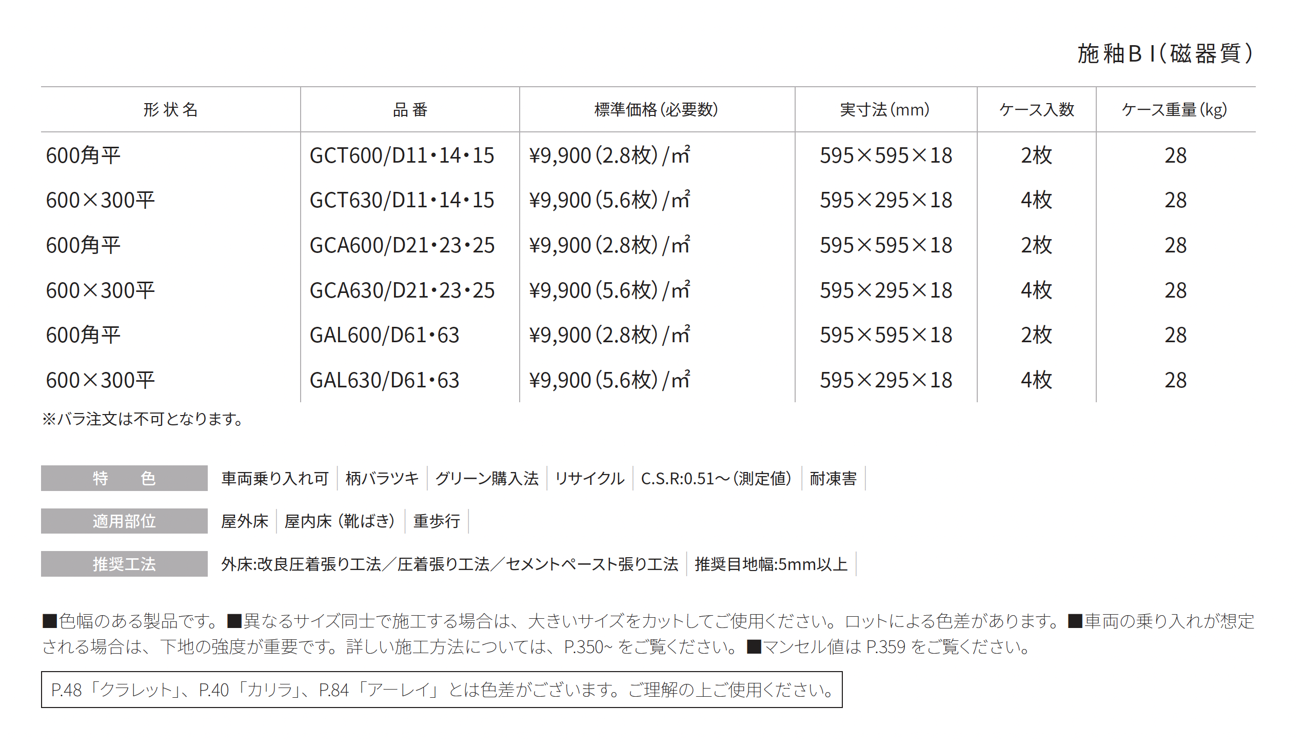 | カラー | GCT/D11 GCT/D14 GCT/D15 GCA/D21 GCA/D23 GCA/D25 GAL/D61 GAL/D63 |