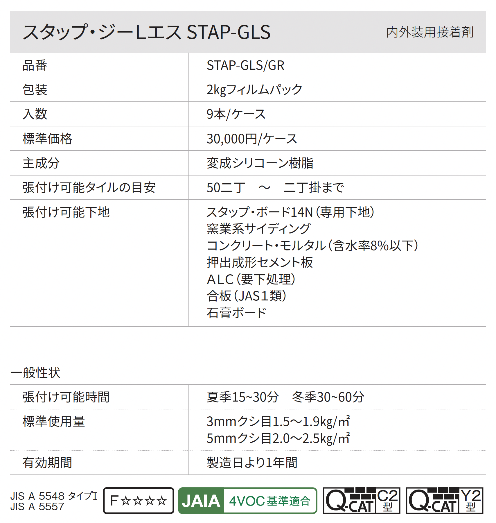 | 新旧品 | スタップ・ジーLエス STAP-GLS(内外装用接着剤)【2025年版】(タイル総合カタログ2025-26) |