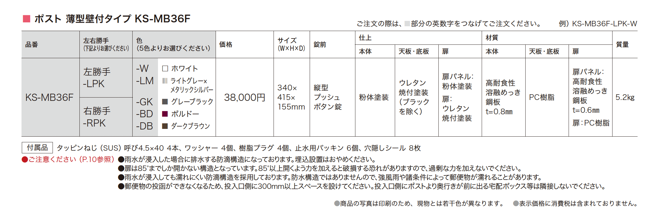 ポスト 薄型壁付タイプ KS-MB36F