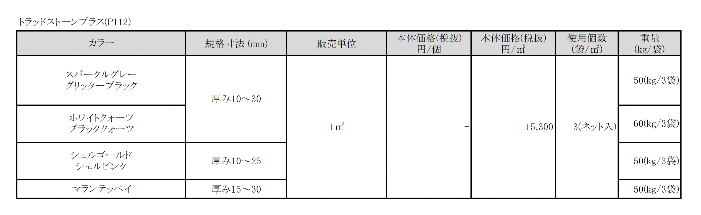 カラー | スパークルグレー(石英岩) グリッターブラック(石英岩) ホワイトクォーツ(石英岩) ブラッククォーツ(石英岩) シェルゴールド(石英岩) シェルピンク(石英岩) マランテッペイ(安山岩) |