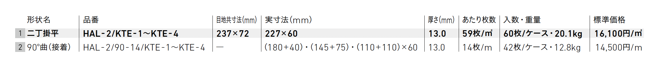 | カラー | KTE-1 KTE-2 KTE-3 KTE-4 |