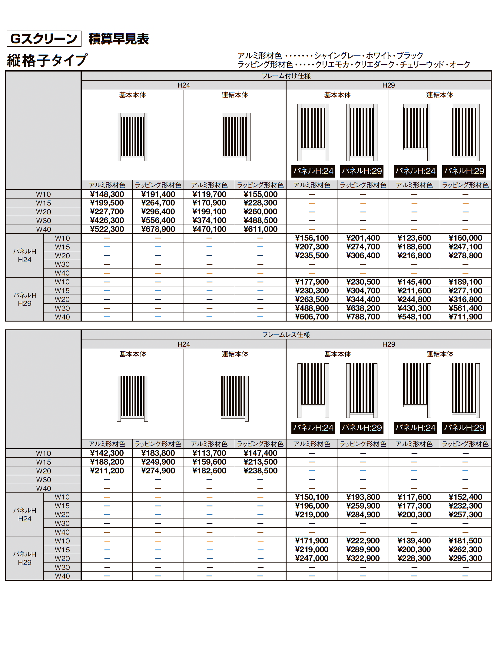 | 新旧品 | プラスG Gスクリーン 縦格子タイプ【2025年版】(エクステリア総合カタログ2025-2026)プラスG Gスクリーン 縦格子タイプ【2024年版】(エクステリア総合カタログ2024-2025) |