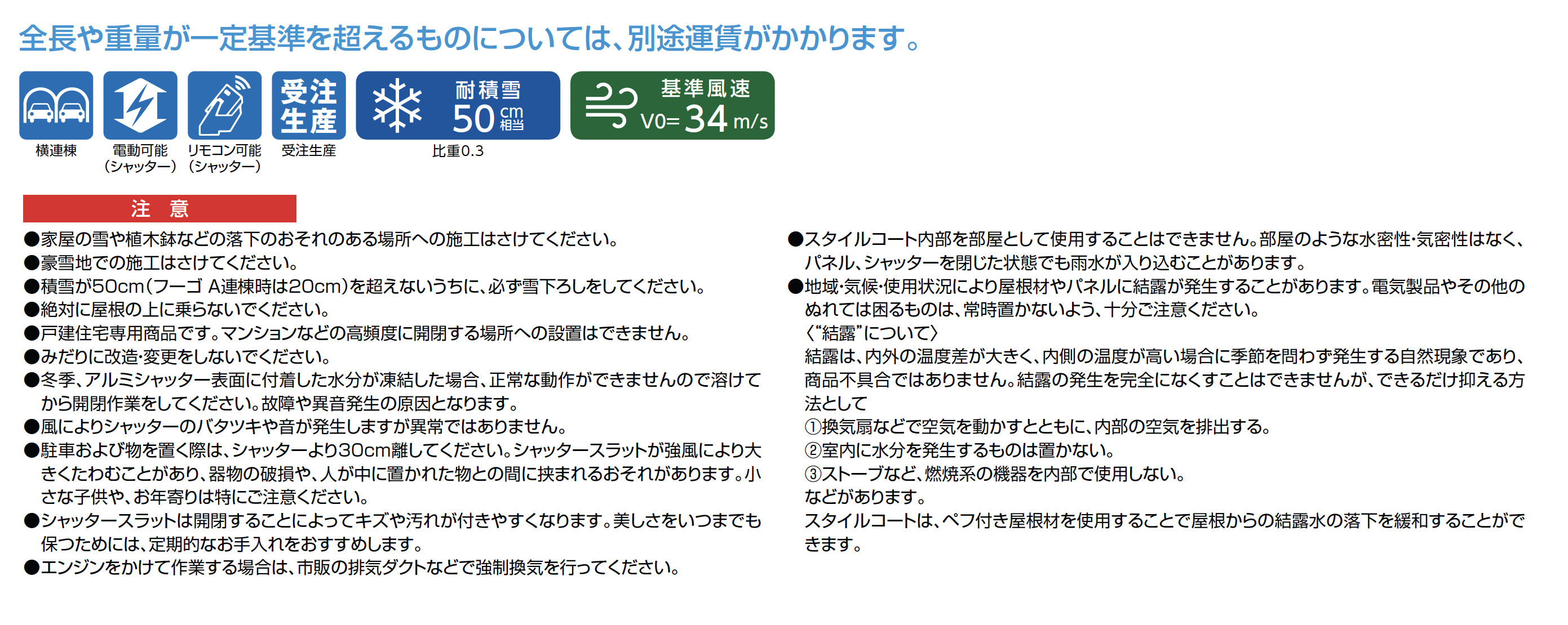 | 強度 | 耐積雪50cm相当 基準風速V0=34m/s |