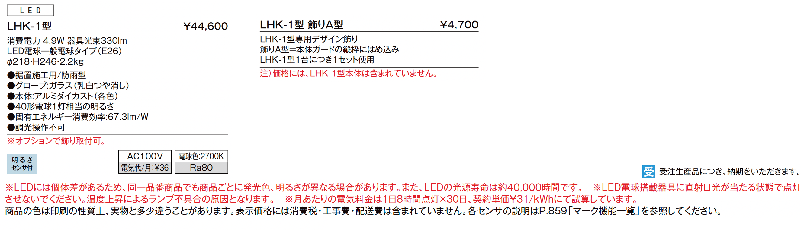 門柱灯 LHK-1型【2022年版】(エクステリア総合カタログ2022-2023)