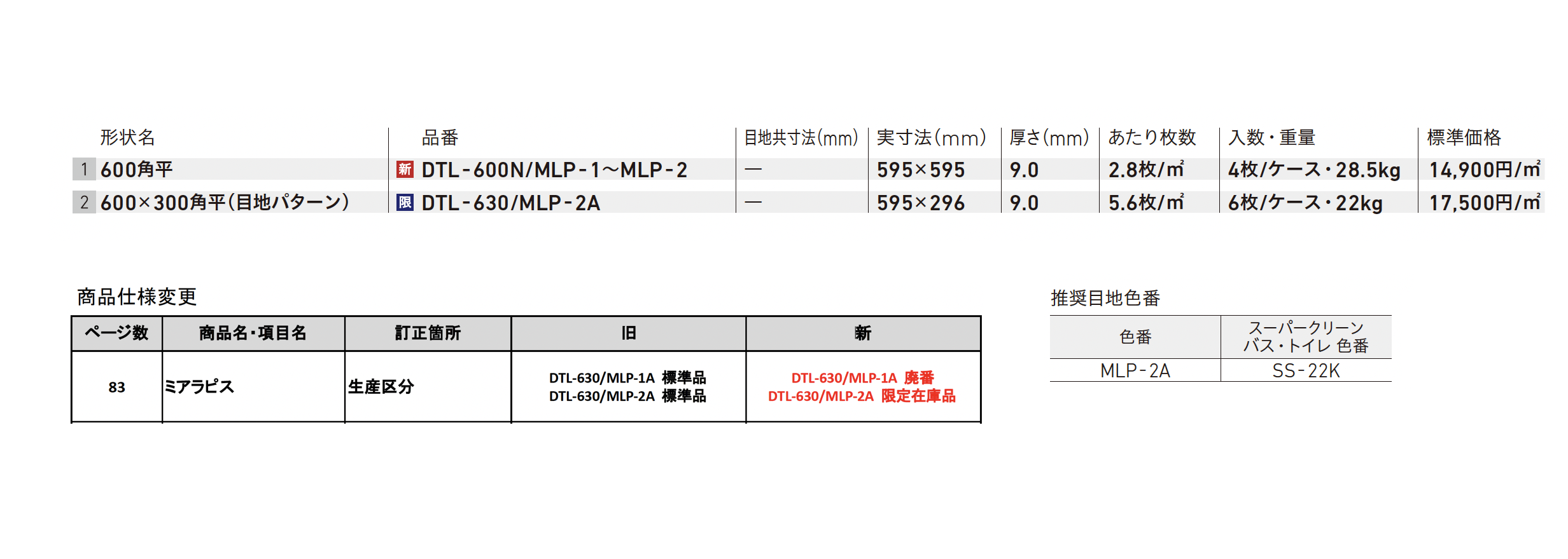 | 標準納期 | 即納対応:100㎡以下 品切れ時対応納期:納期確認 品番により生産区分が異なる場合がございます。 |