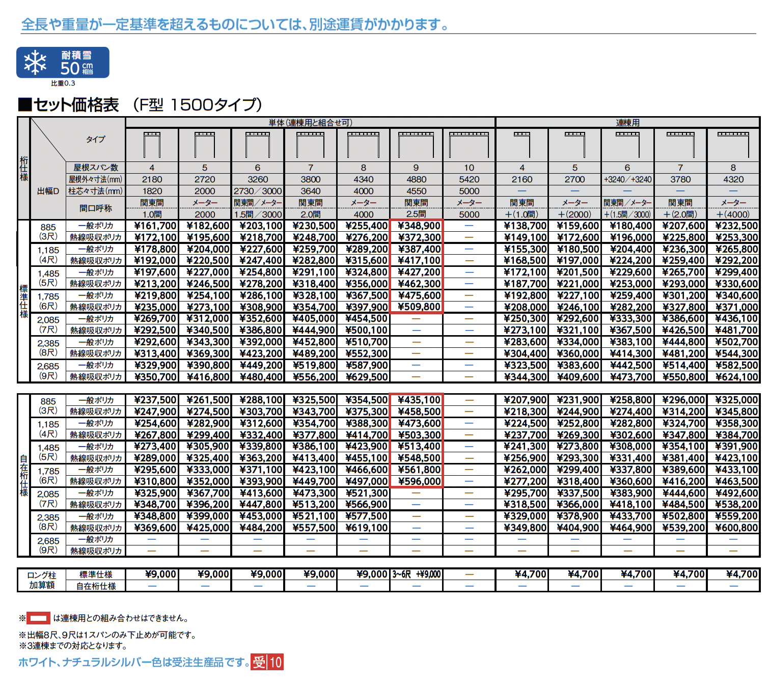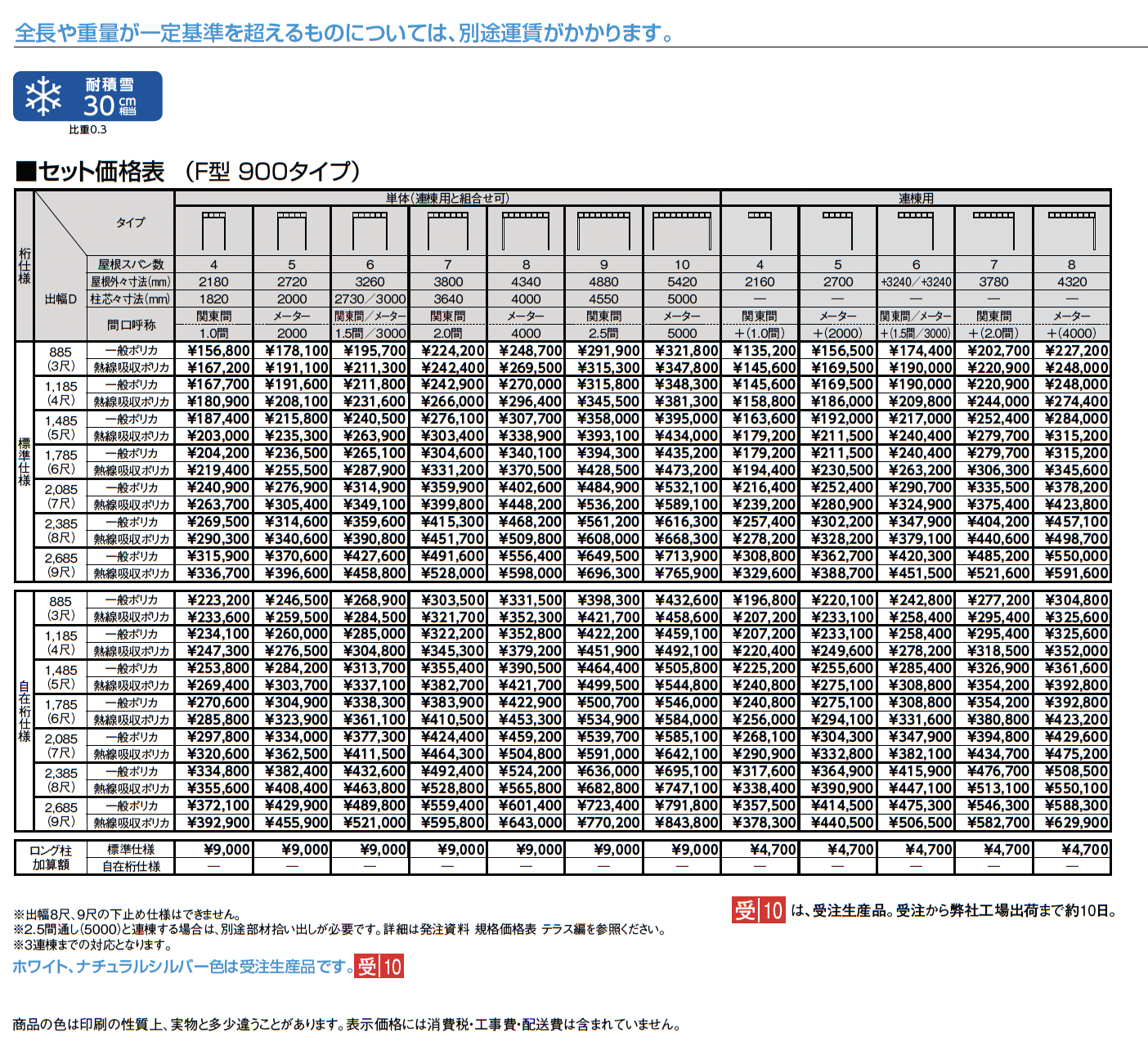 | 強度 | 耐積雪30cm相当 耐積雪50cm相当 |