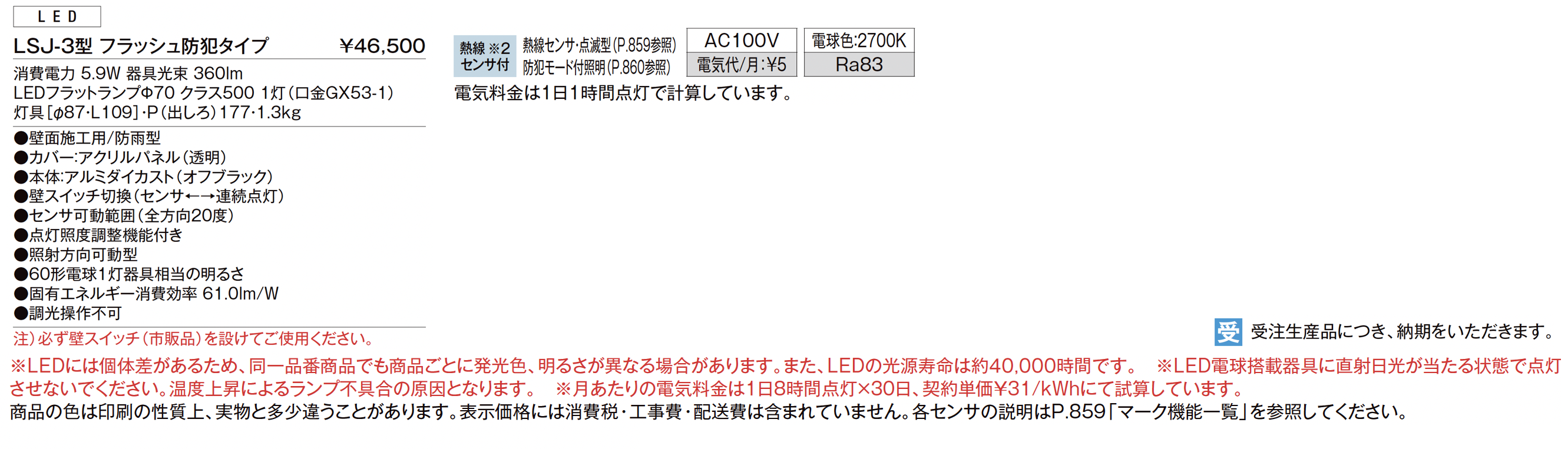 スポットライト LSJ-3型 フラッシュ防犯タイプ【2025年版】(エクステリア総合カタログ2025-2026)