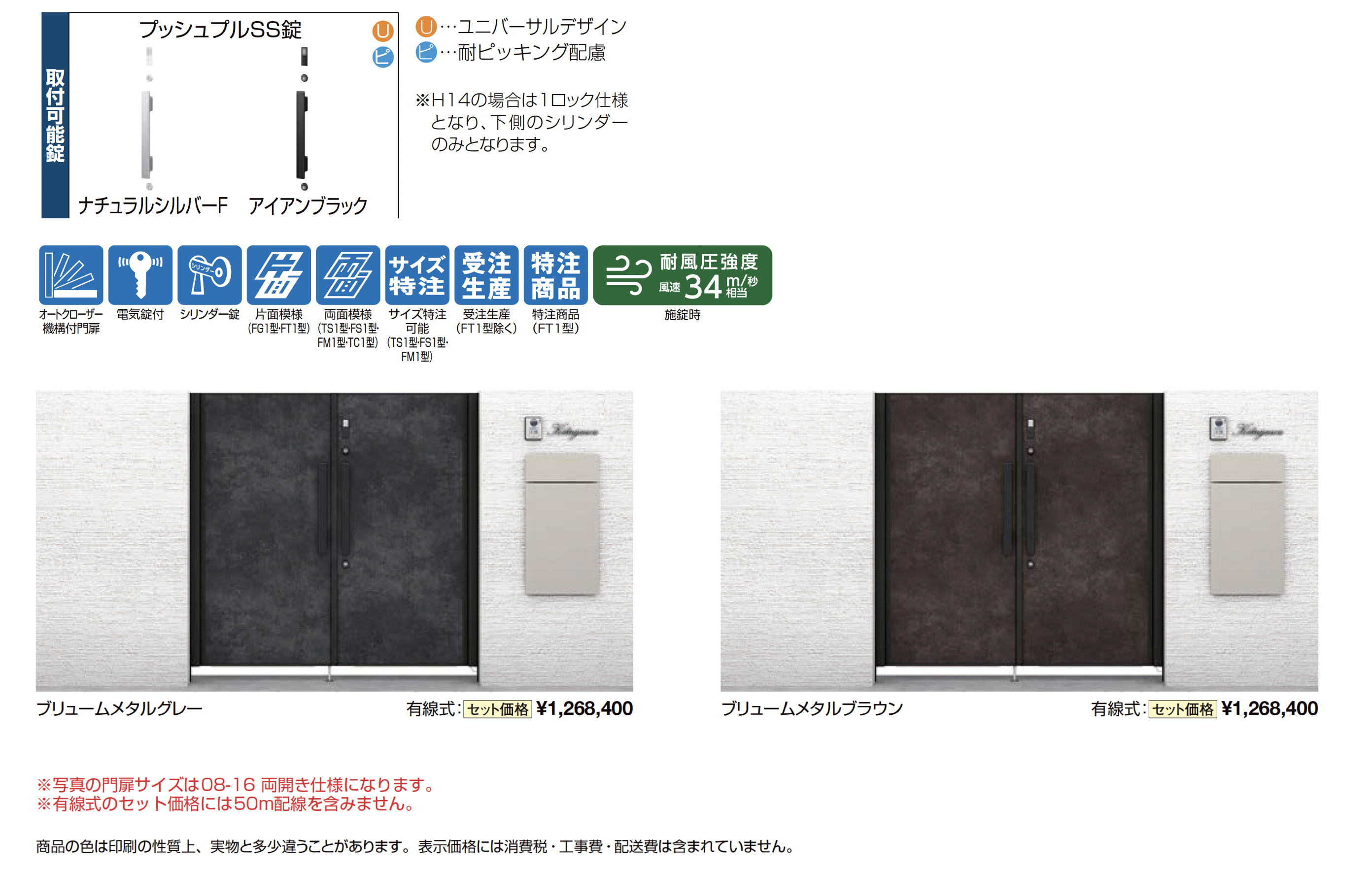 | デザイン | 両開き(標準門柱使用・埋込使用・親子仕様) 片開き(標準門柱使用・埋込使用) |