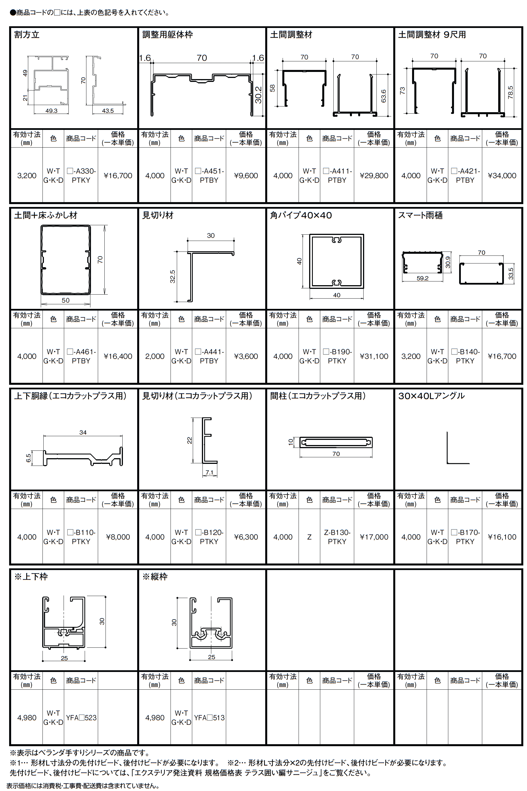 サニージュ用 形材【2025年版】(エクステリア総合カタログ2025-2026)