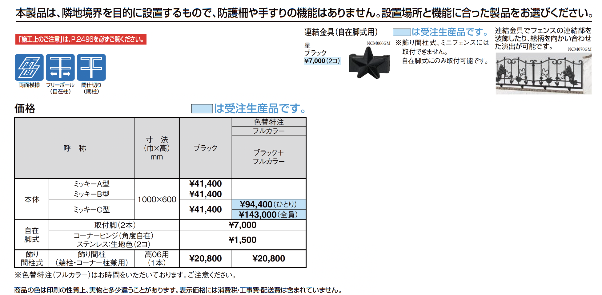 ディズニー フェンス ミッキーB型【2024年版】(エクステリア総合カタログ2024-2025)