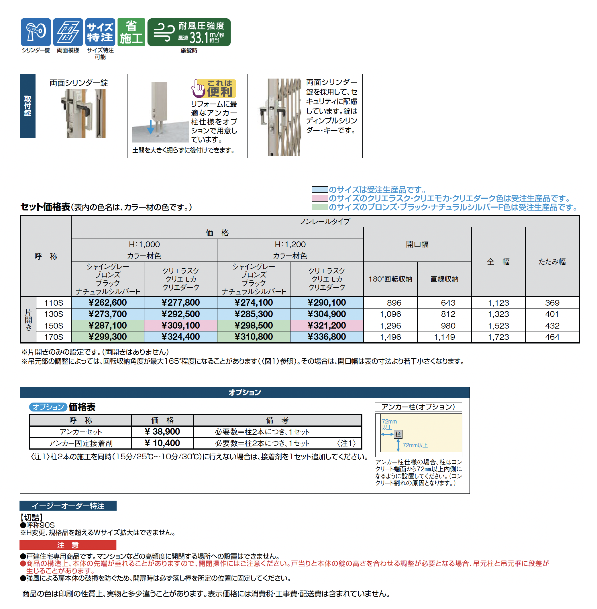 | 強度 | 耐風圧強度風速33.1m/秒相当 |