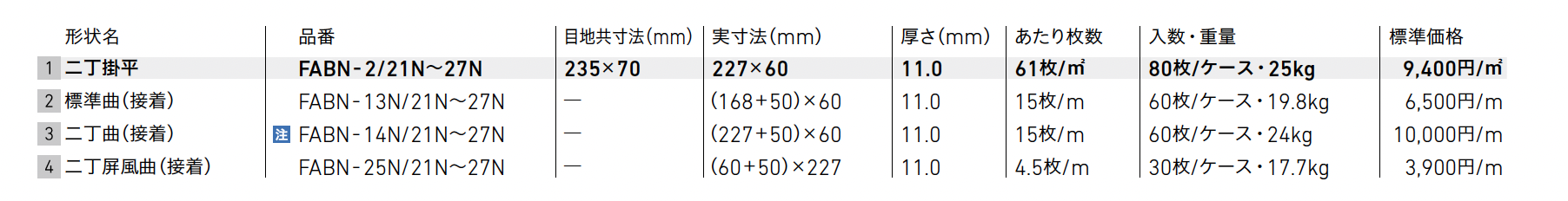 | 標準納期 | 即納対応:200㎡以下 品切れ時対応納期:納期確認 品番により生産区分が異なる場合がございます。 |