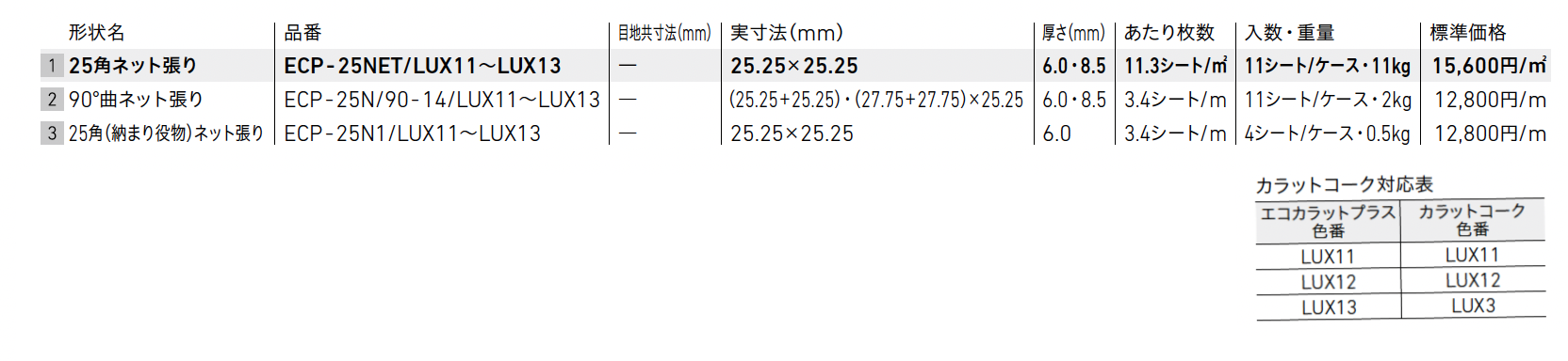 | 標準納期 | 即納対応:50㎡以下 品切れ時対応納期:納期確認 品番により生産区分が異なる場合がございます。 |