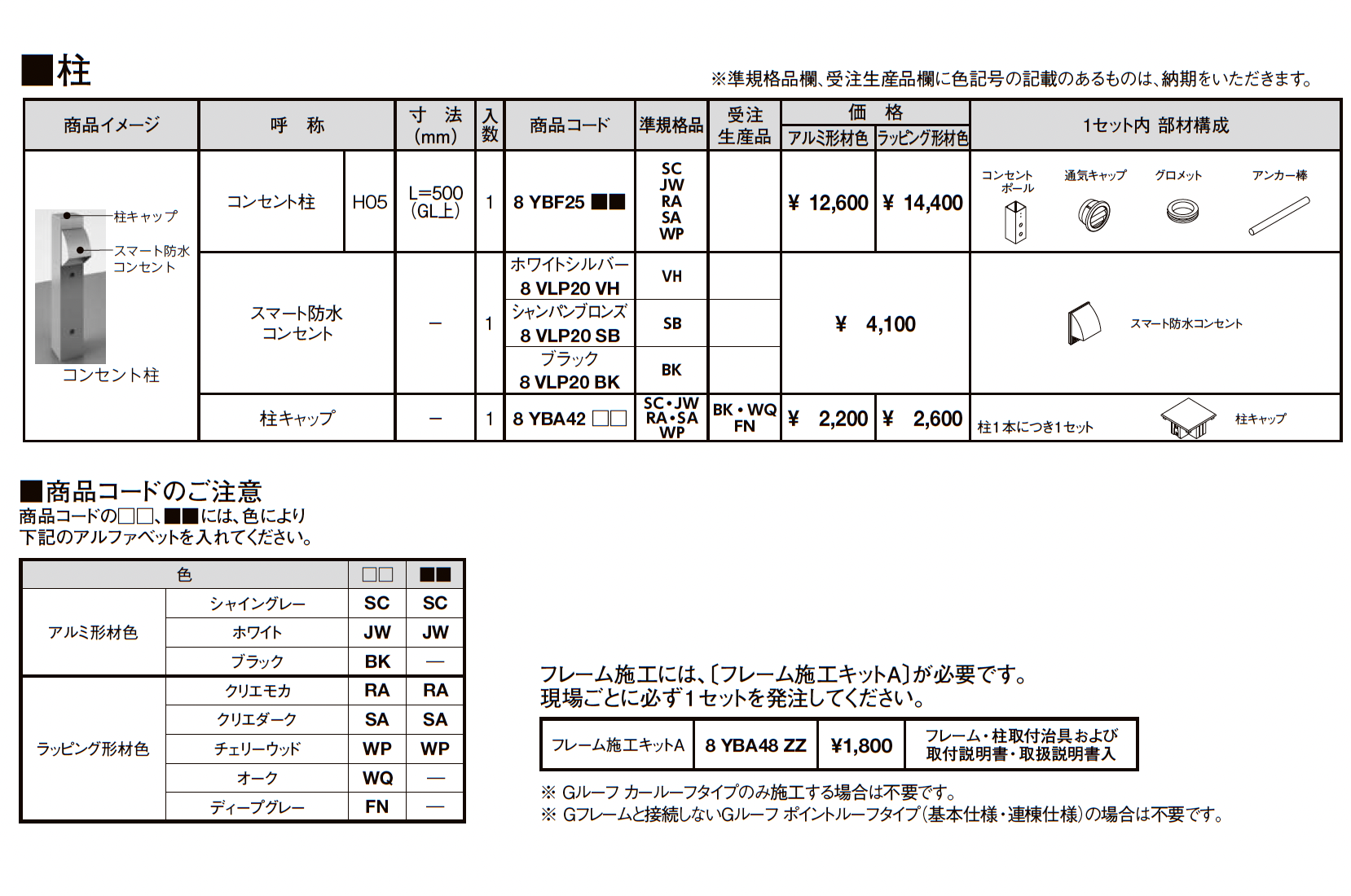 | 新旧品 | プラスG Gフレーム 柱【2025年版】(エクステリア総合カタログ2025-2026)プラスG Gフレーム 柱・ファンクション柱【2024年版】(エクステリア総合カタログ2024-2025) |