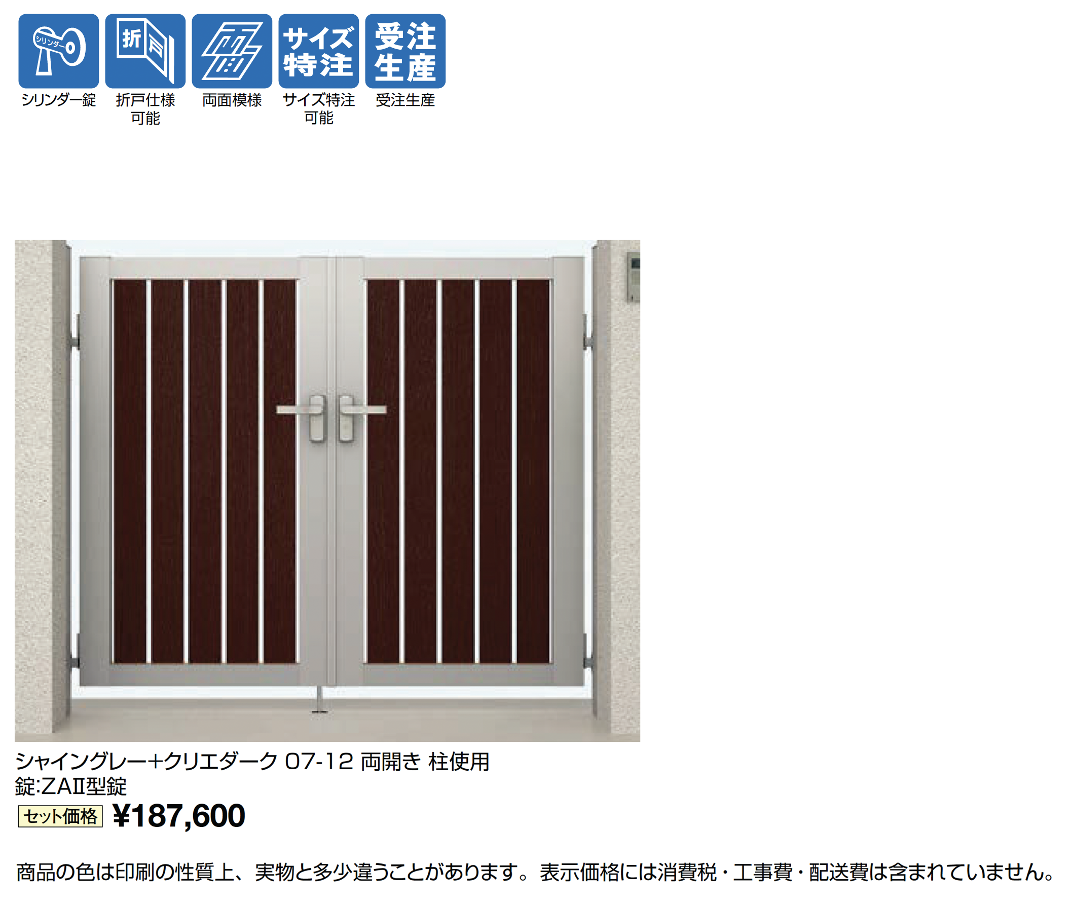 | デザイン | 3枚折戸・埋込使用 3枚折戸・柱使用 4枚折戸・埋込使用 4枚折戸・柱使用 両開き 両開き・埋込使用 両開き・柱使用 両開き親子仕様・埋込使用 両開き親子仕様・柱使用 片開き 片開き・埋込使用 片開き・柱使用 縦格子 親子 |