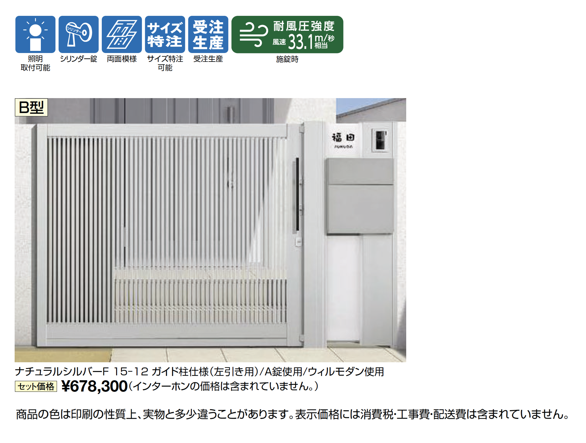 | 強度 | 耐風圧強度風速33.1m/秒相当 |