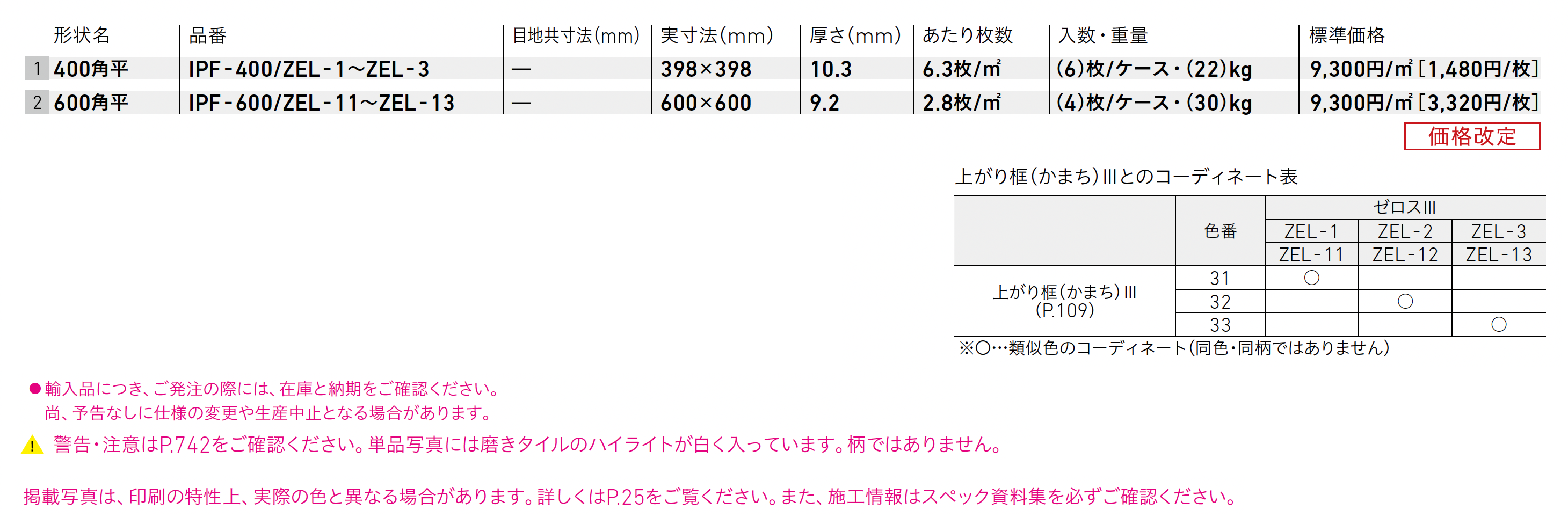 | 新旧品 | ゼロスⅢ【2025年版】(2025タイル建材総合カタログ) |