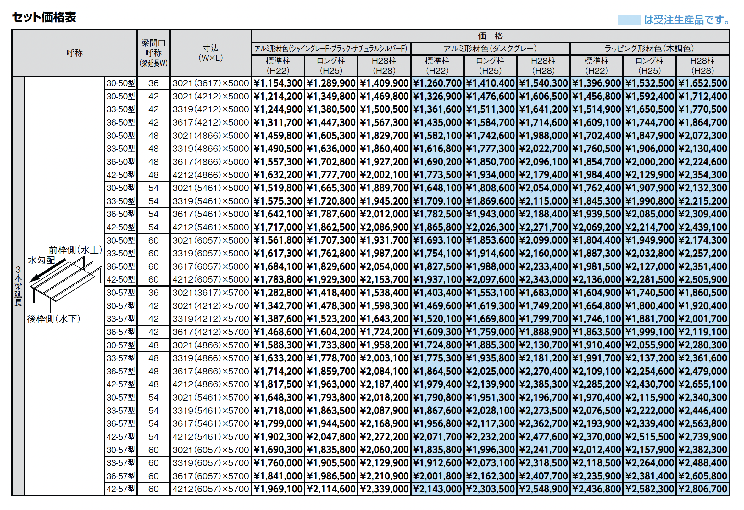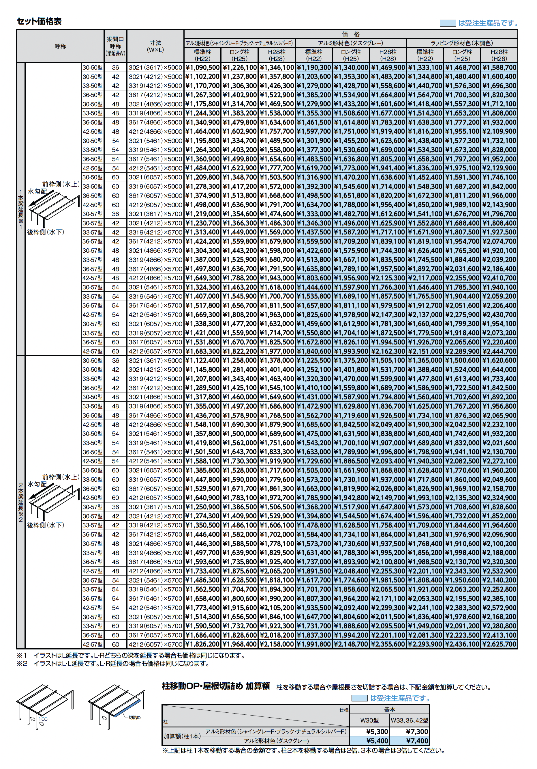 | 材質 | アルミ形材 アルミ形材またはアルミ形材+ラッピング形材 |