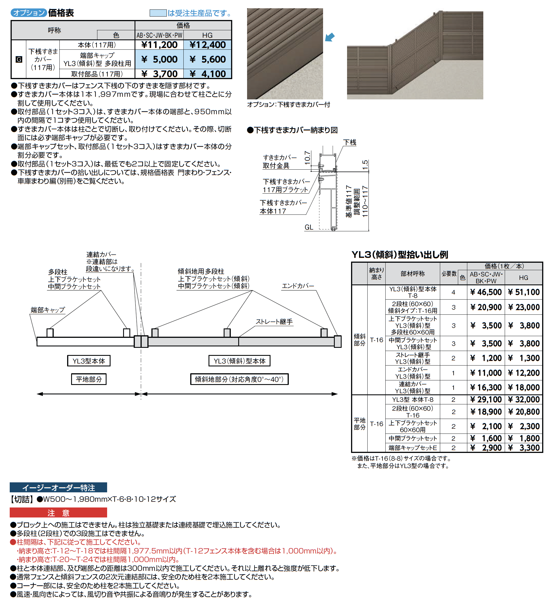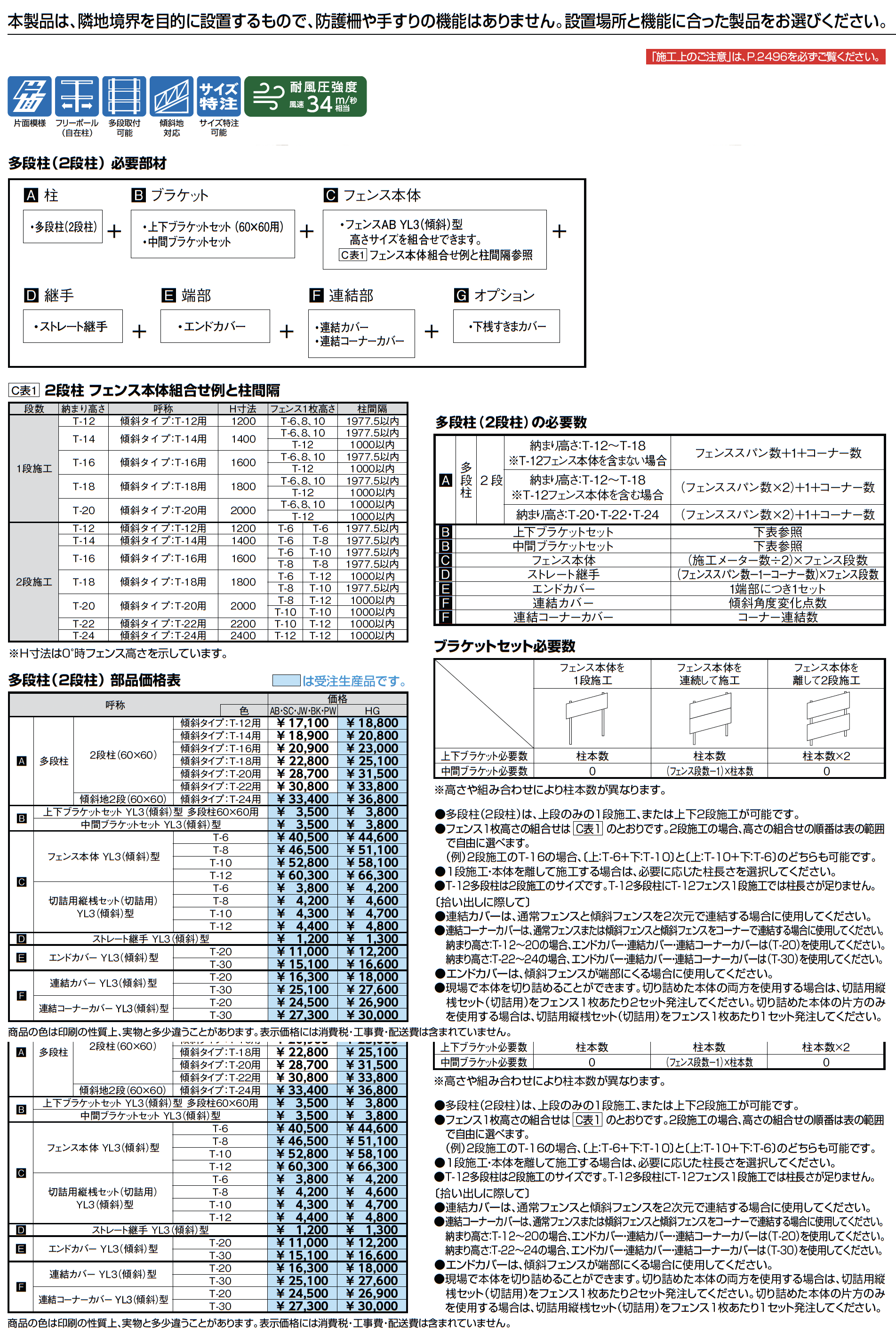 フェンスAB YL3(傾斜)型(横ルーバー)多段柱(2段柱)【2024年版】(エクステリア総合カタログ2024-2025)
